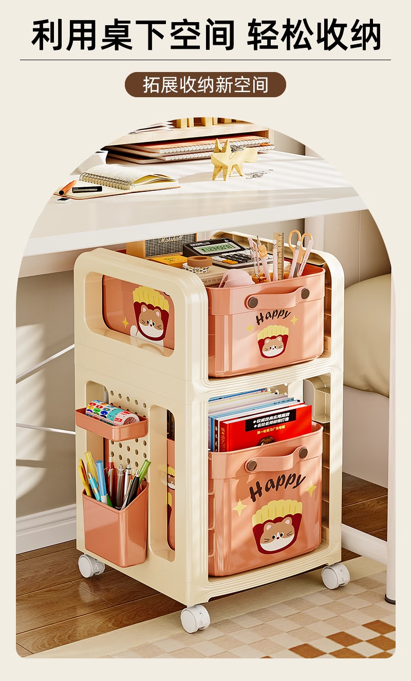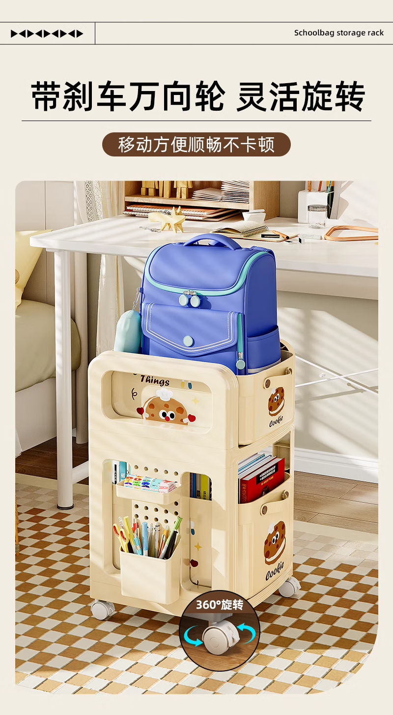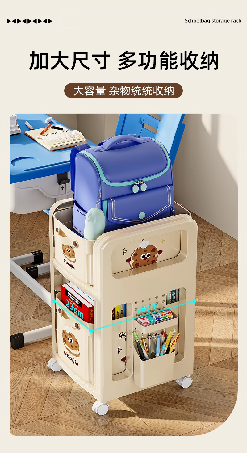 木格格书包置物架可移动多层小推车书包架桌下书本零食收纳神器收纳架子 【粉色猫猫-2层】赠笔筒+收纳盒+挂钩*4