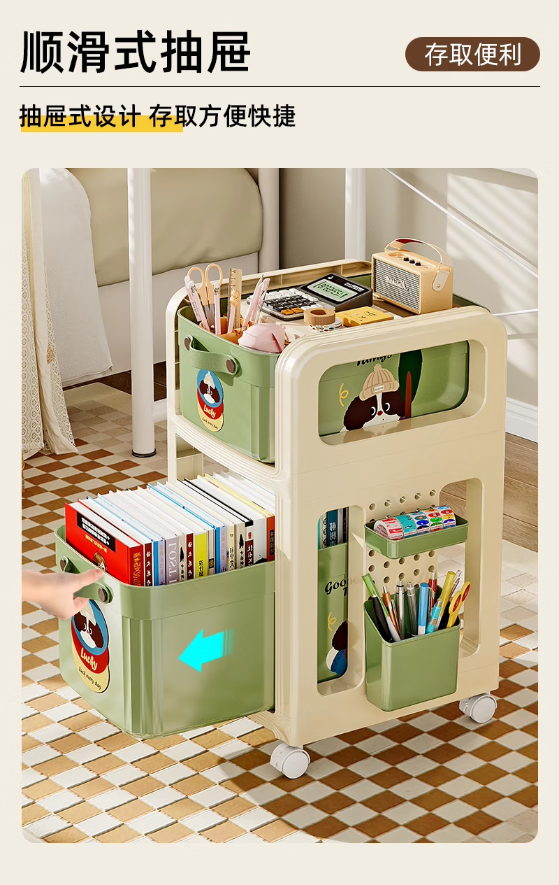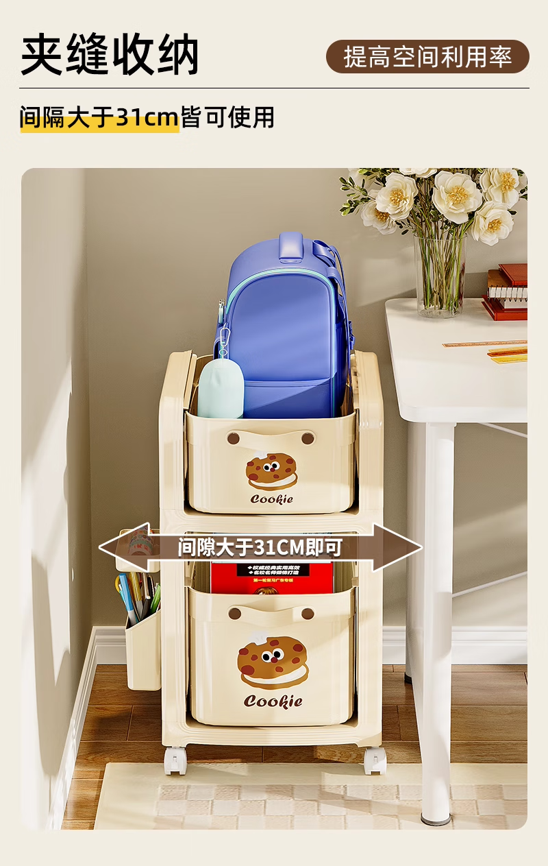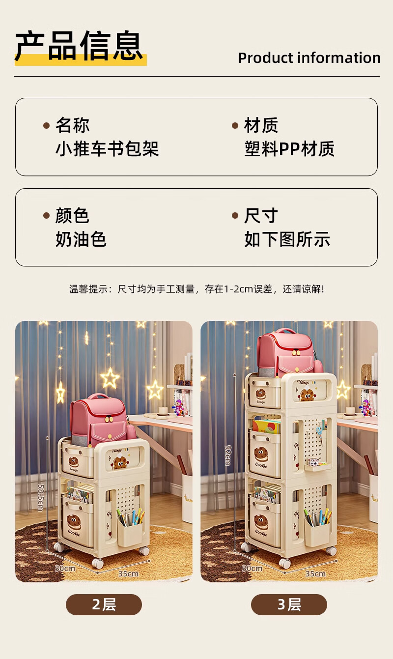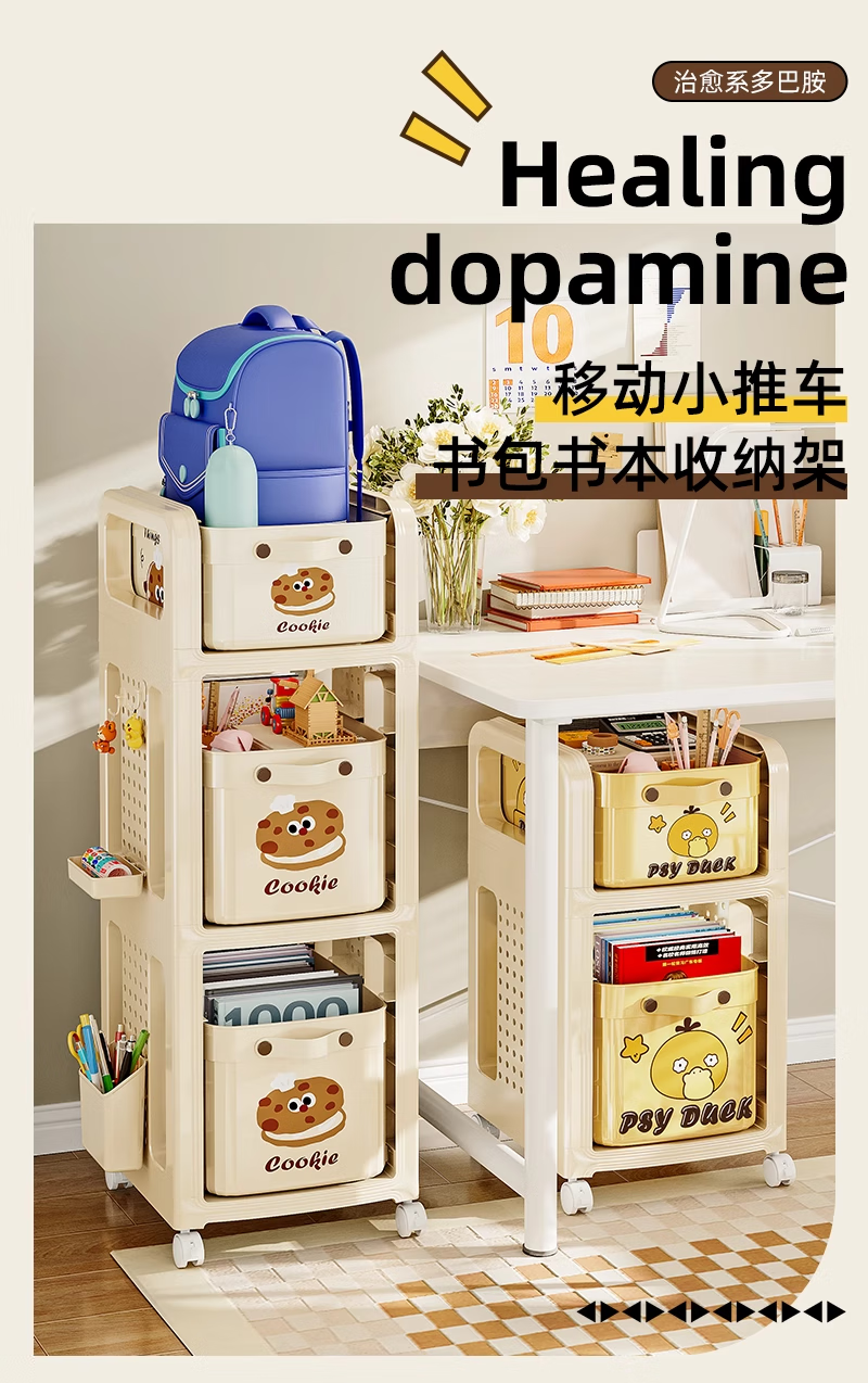 木格格书包置物架可移动多层小推车书包架桌下书本零食收纳神器收纳架子 【粉色猫猫-2层】赠笔筒+收纳盒+挂钩*4