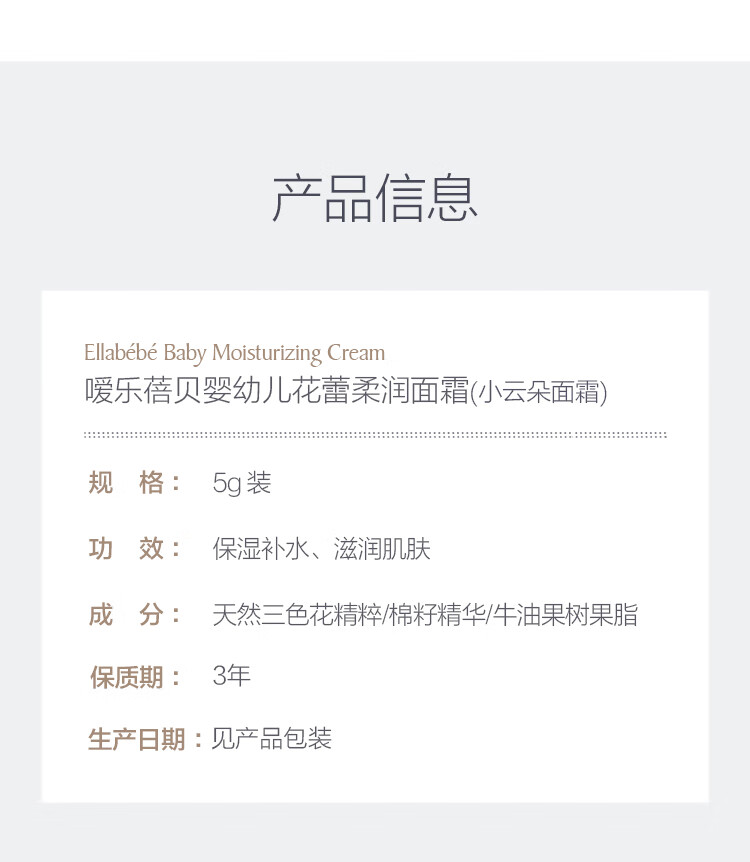 嗳乐蓓贝Ellabebe 婴幼儿花蕾柔润面霜 5g