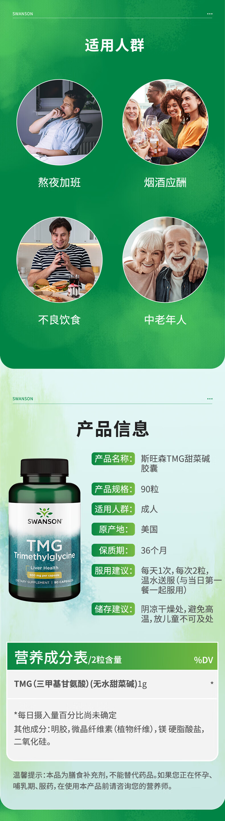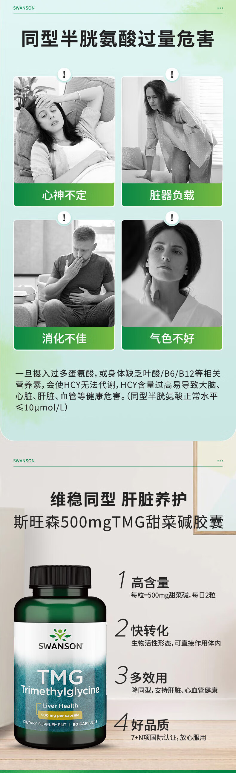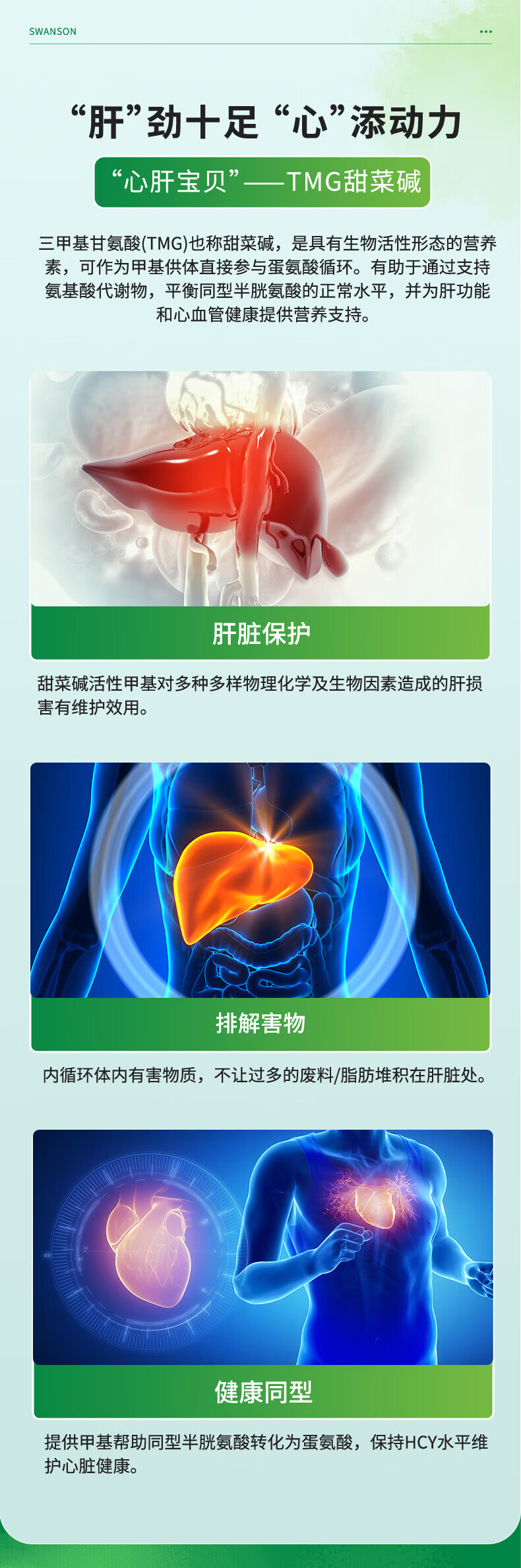 斯旺森(SWANSON)TMG甜菜碱护肝片精华胶囊 成人养肝防心血管 加班熬夜必备 90粒