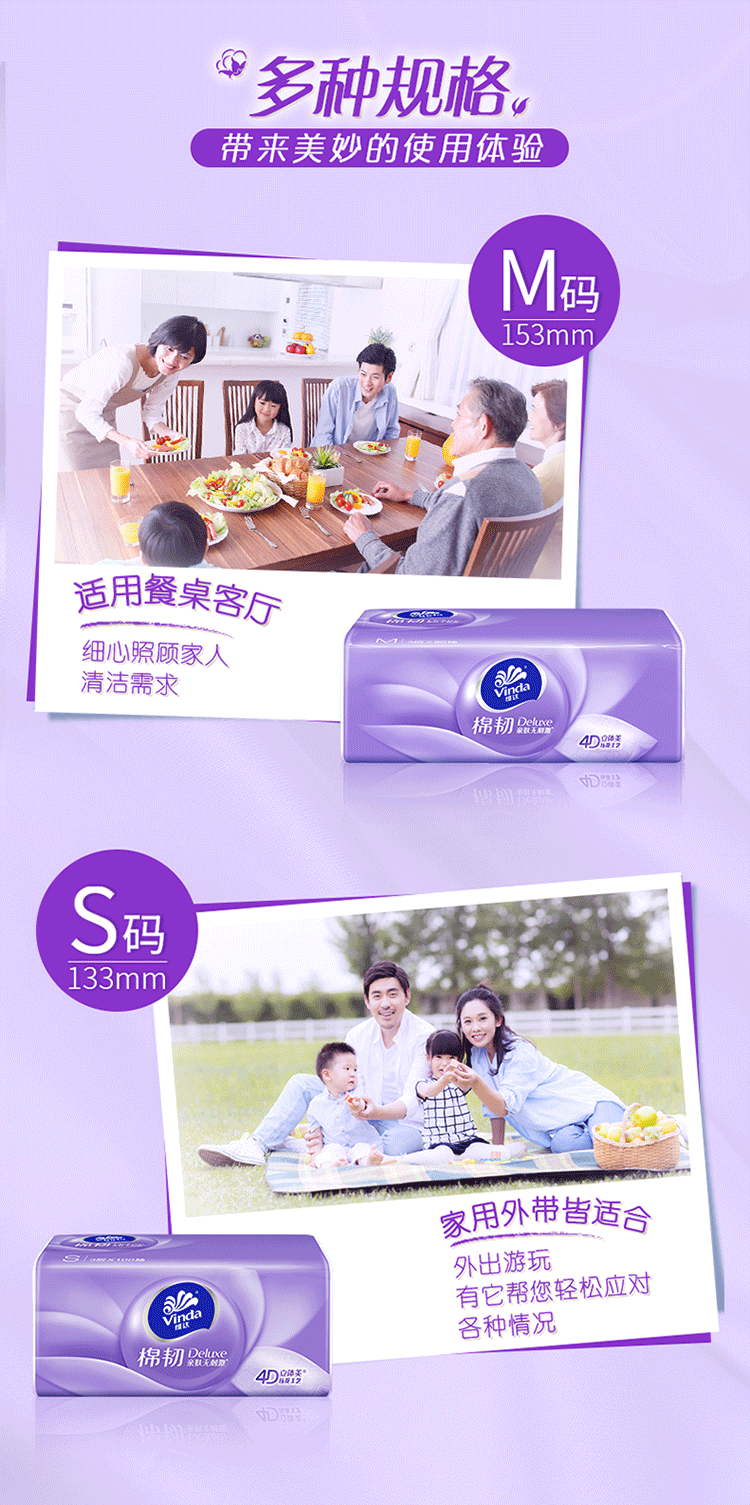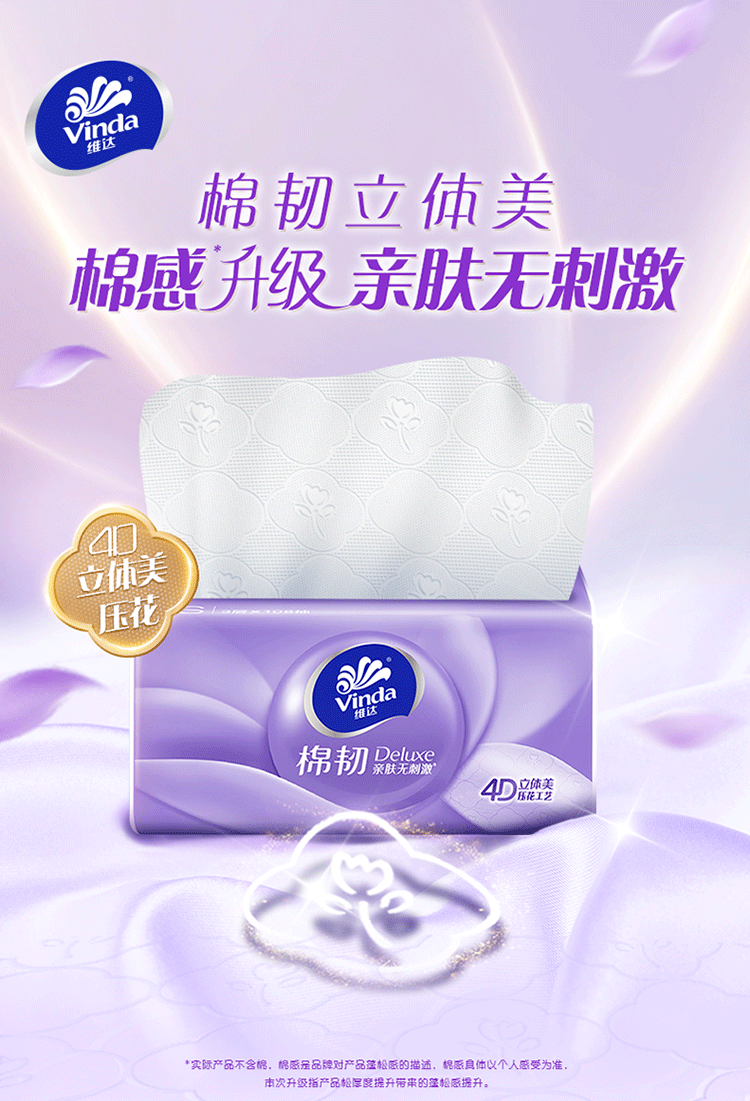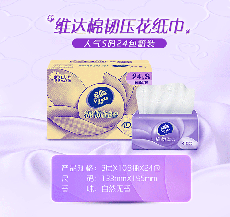 维达(Vinda)棉韧抽纸S码108抽24包 立体美压花餐巾面巾纸卫生纸擦手纸 整箱 3层 108抽*24包 整箱