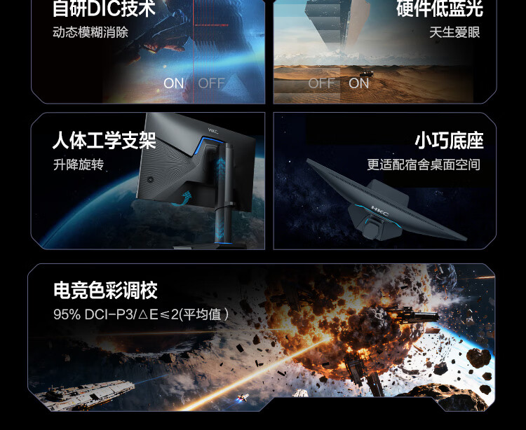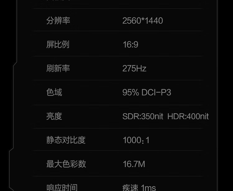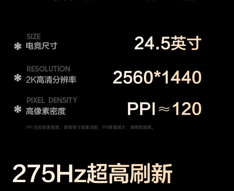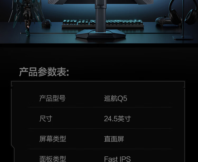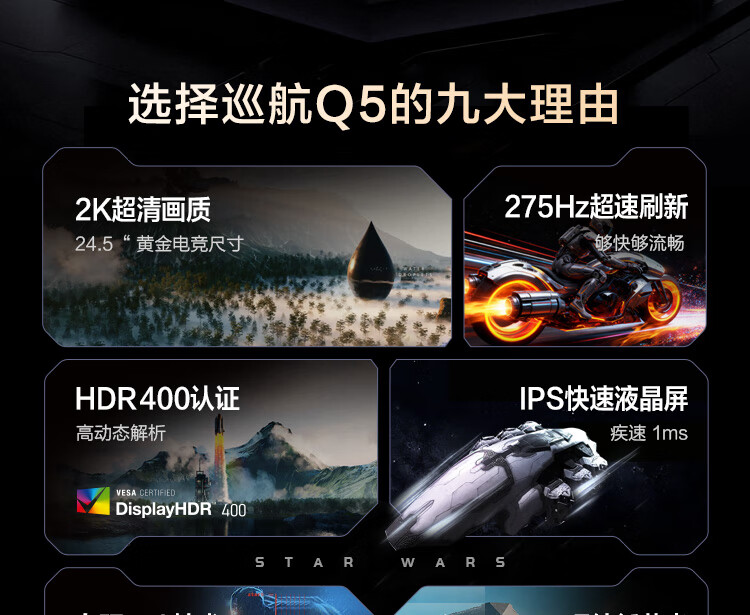 HKC 24.5英寸2K原生275Hz高刷FastIPS快速液晶HDR400无畏契约1ms电竞游戏旋转升降电脑显示器巡航Q5