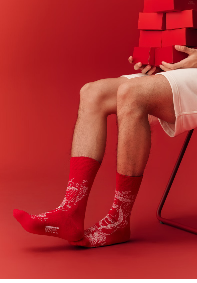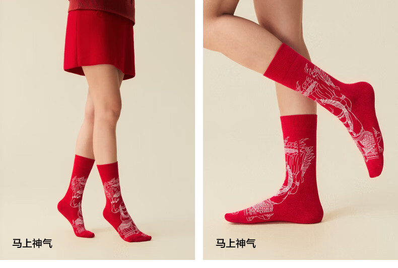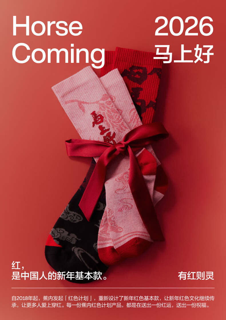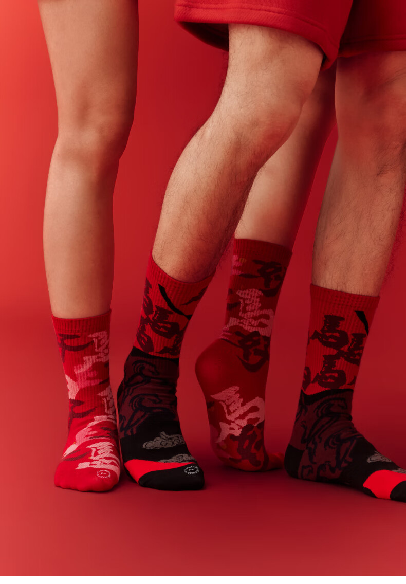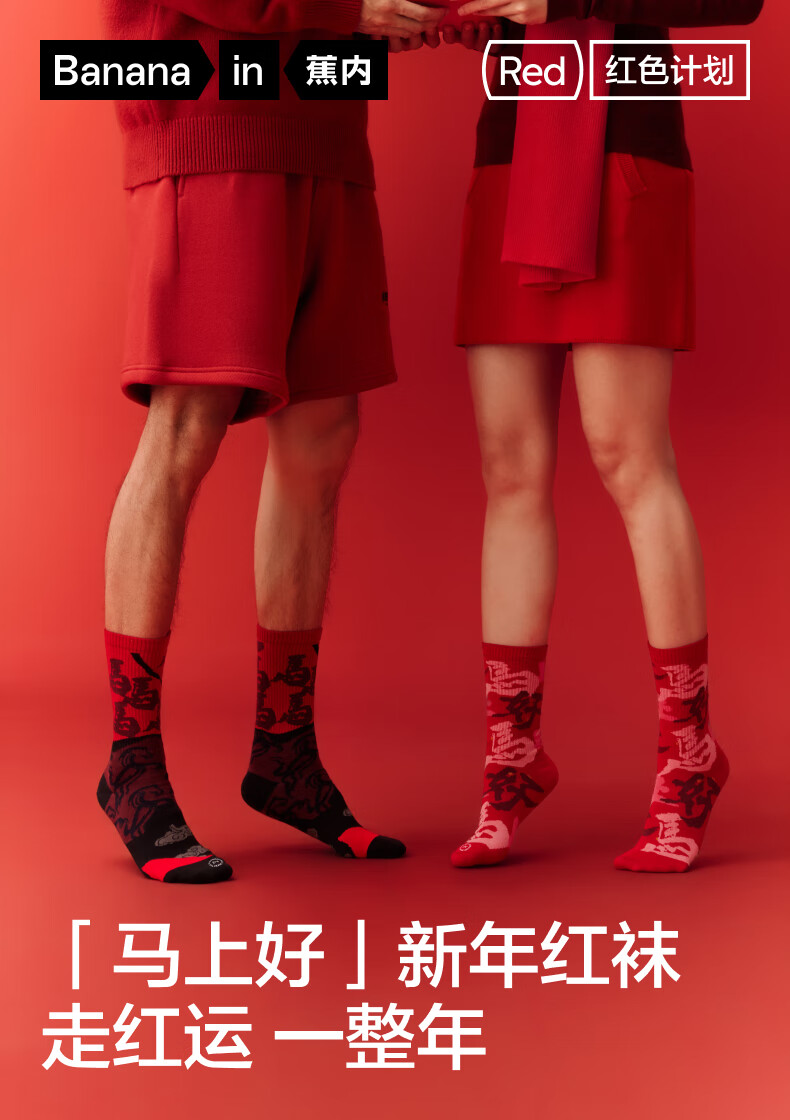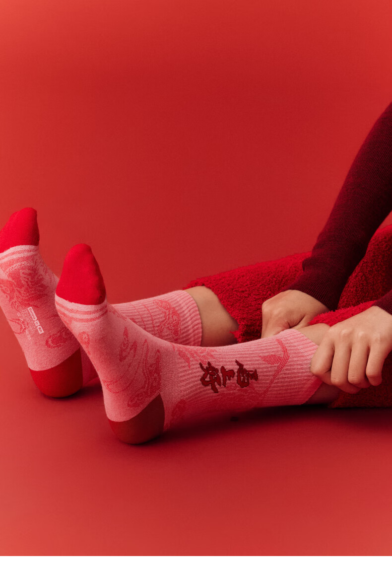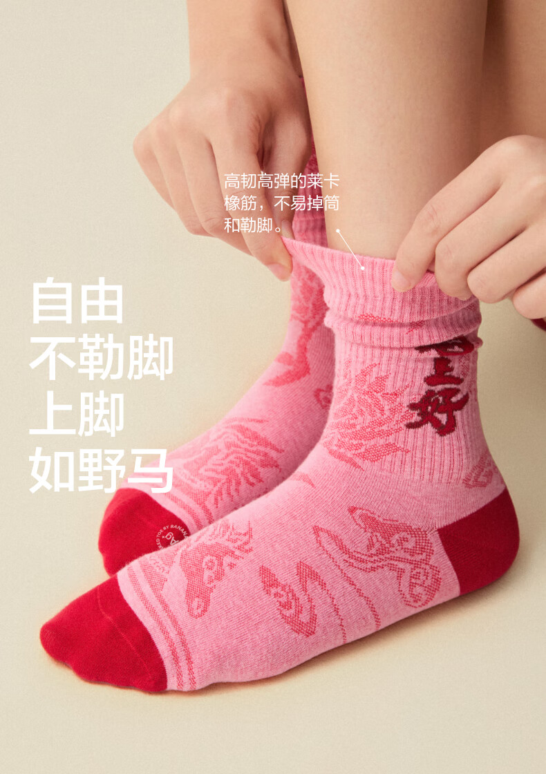 蕉内(Bananain)红色计划520C女士棉袜子本命马年抗菌防臭秋冬季长筒礼盒3双装