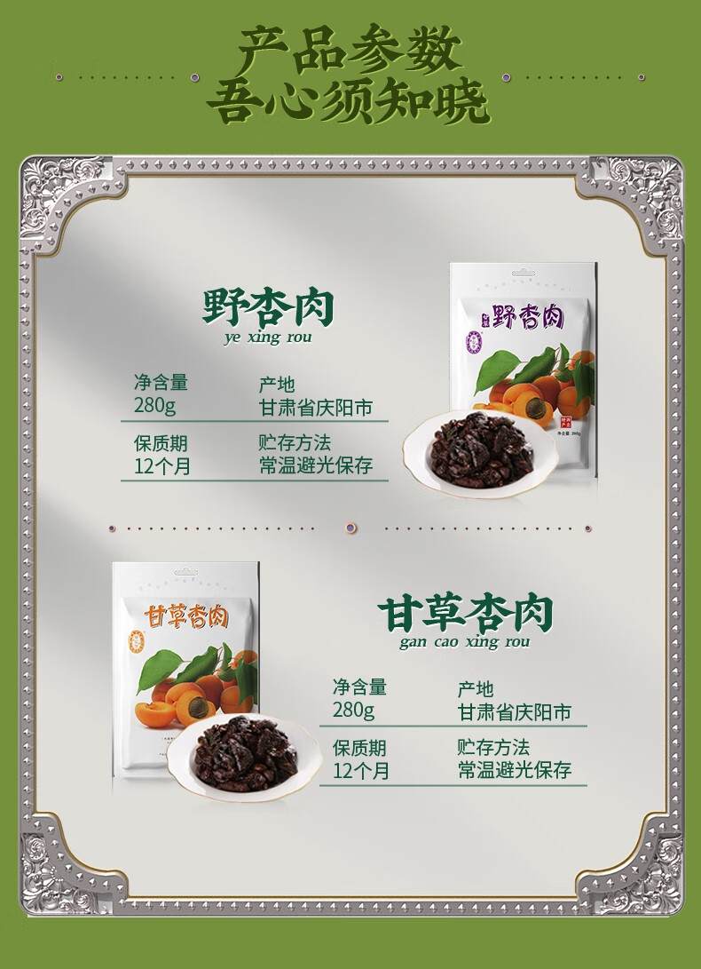 宁安堡杏肉 西北特产温和酸酸甜甜 脾胃好吃饭香 无核甘草红杏干 杏肉 280g*2袋