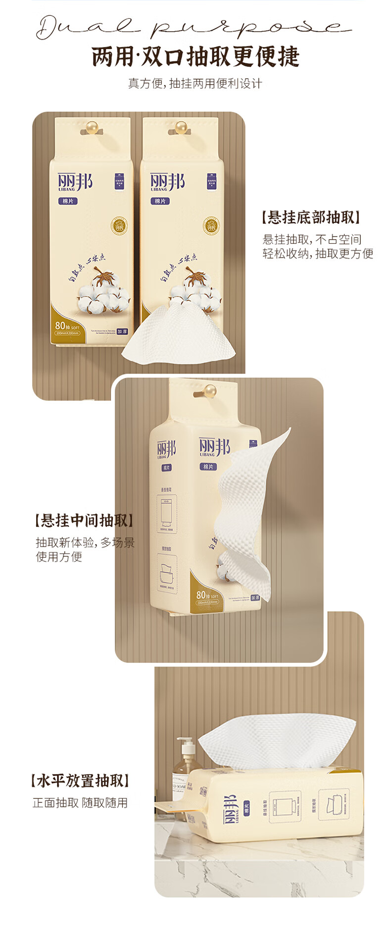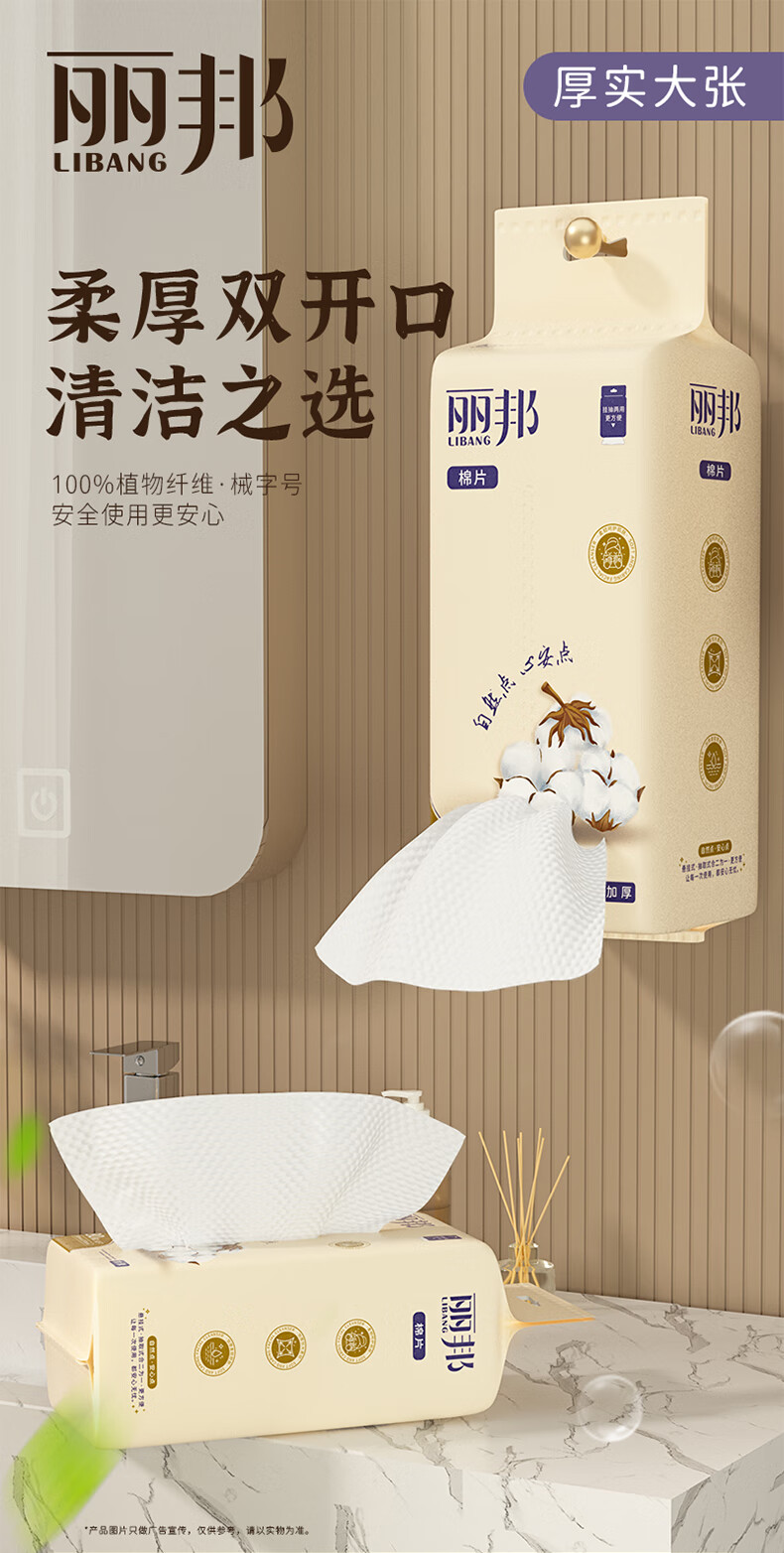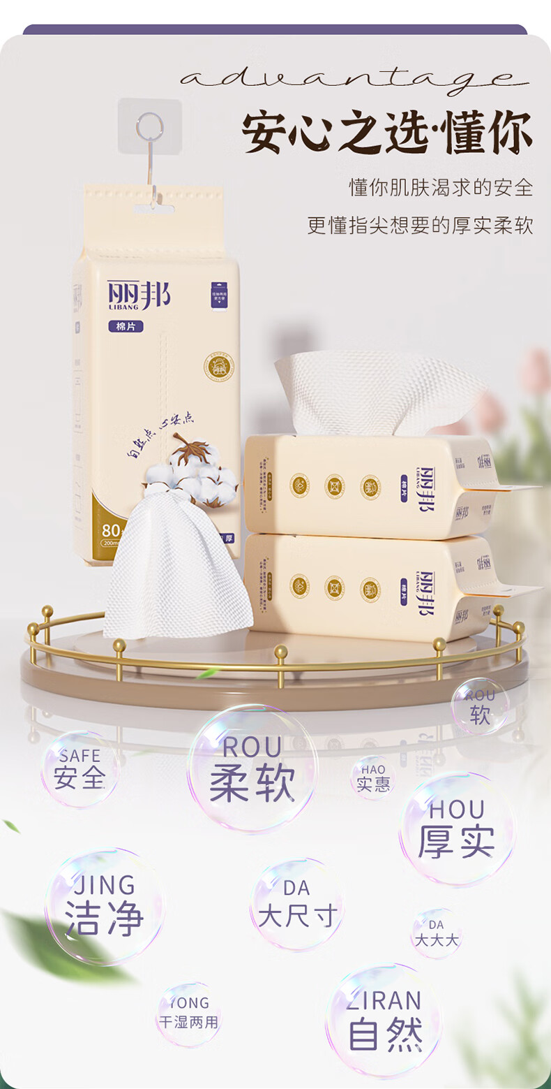 丽邦洗脸巾悬挂式抽取加大加厚母婴擦脸巾干湿两用洁面巾 80抽*2包
