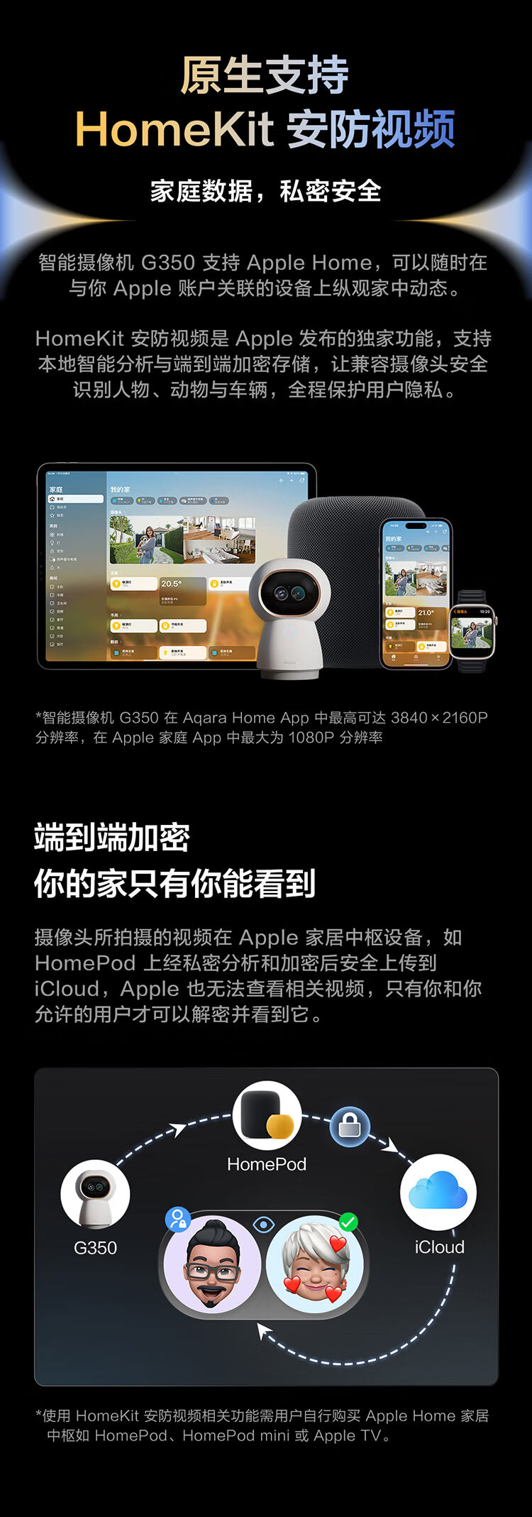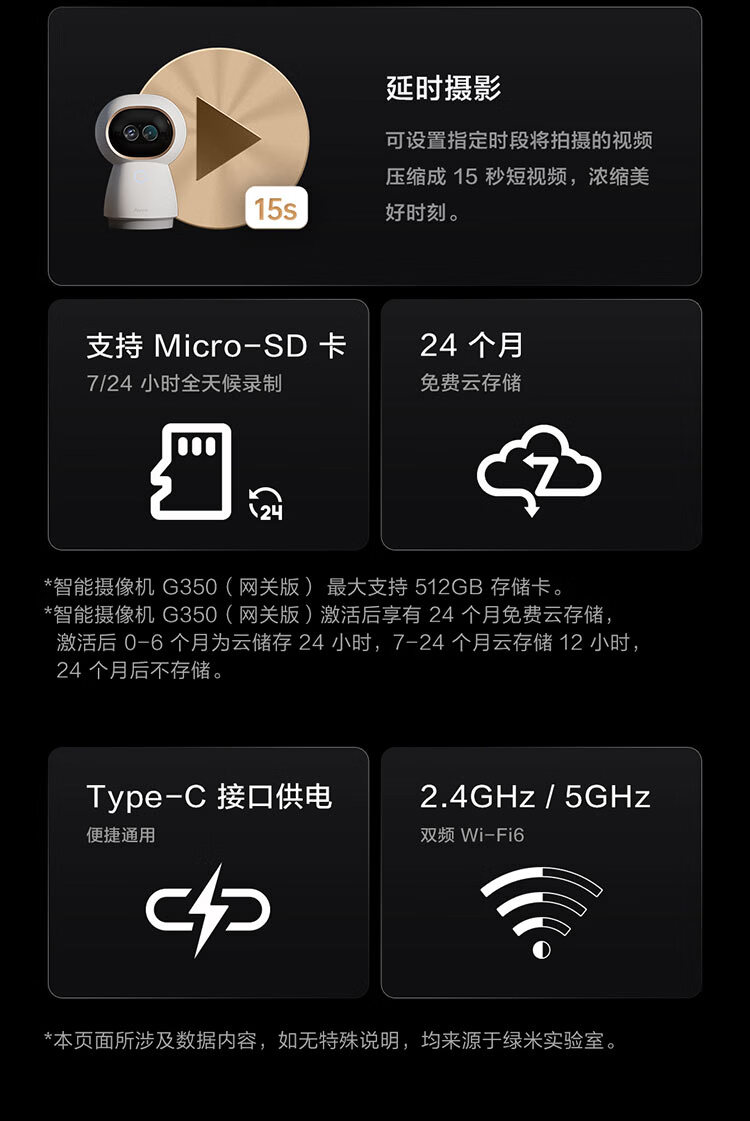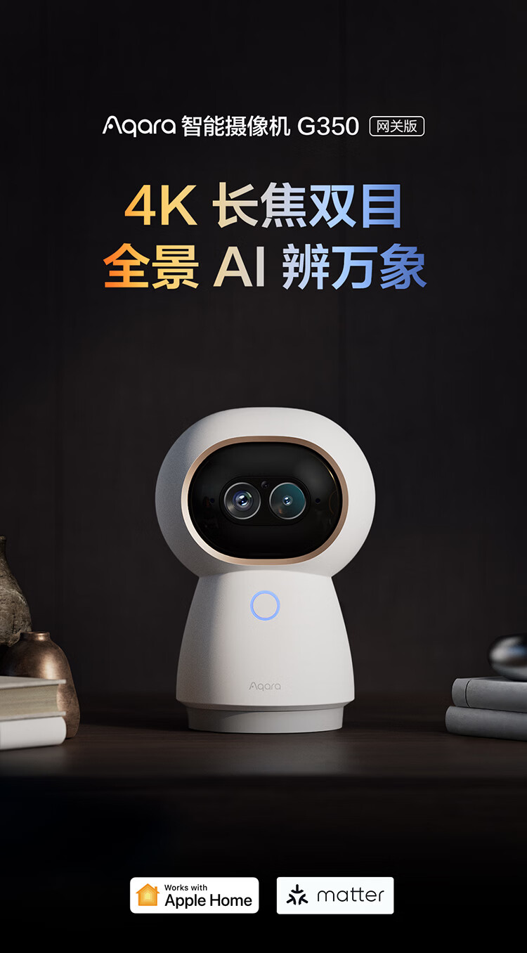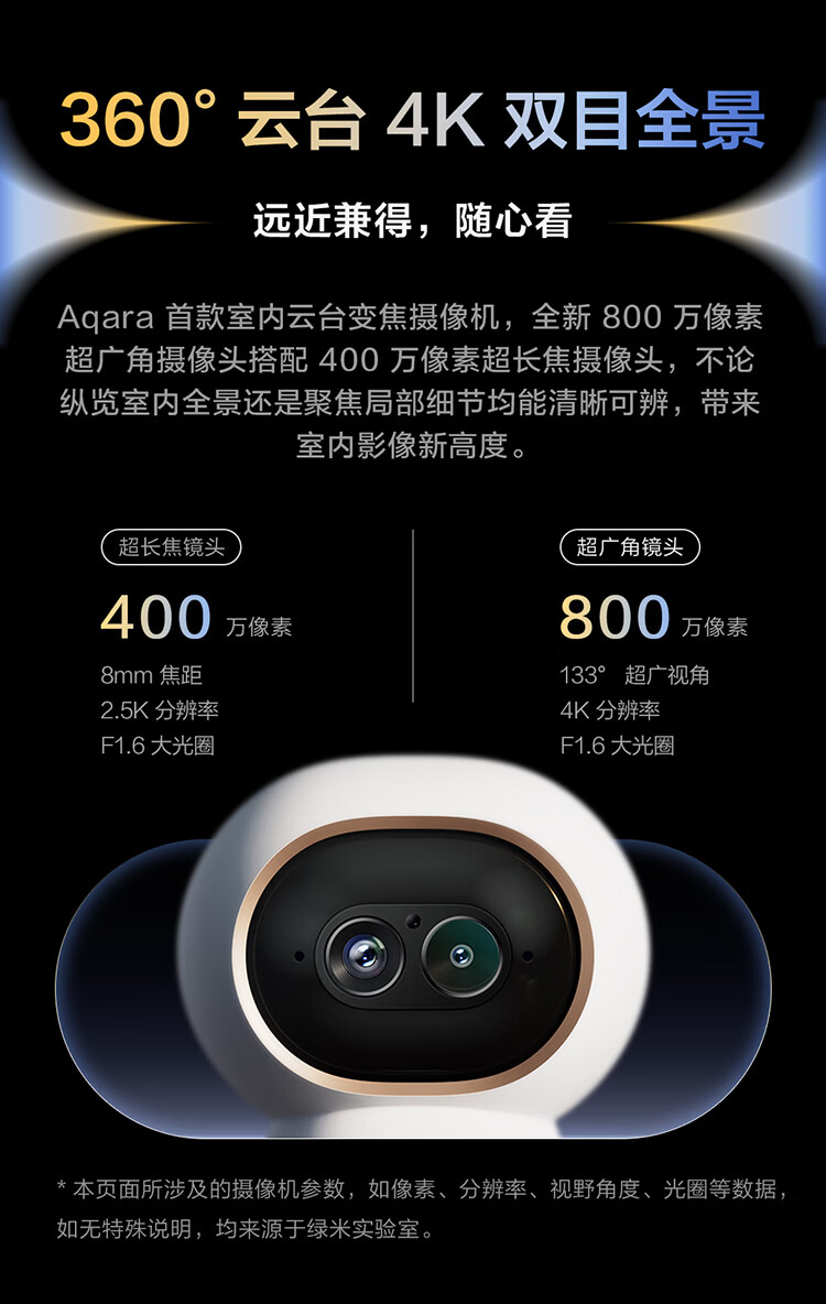 Aqara绿米联创智能摄像机网关版G350安防监控360度全景已接入HomeKit 智能摄像机G350