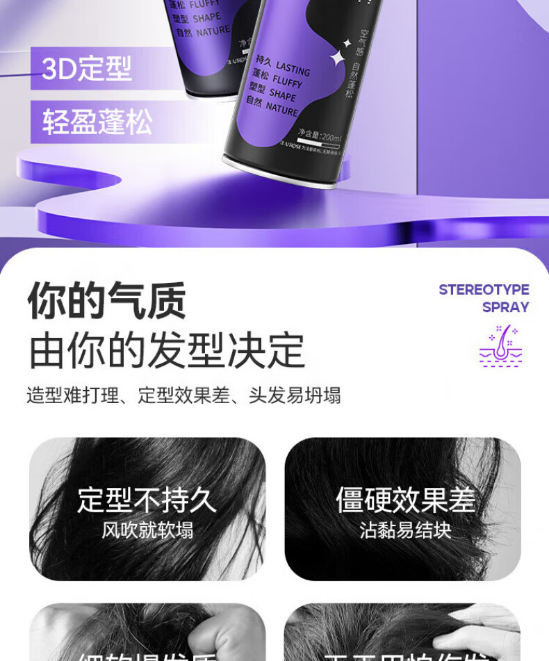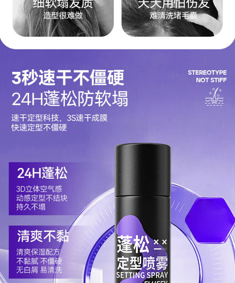 ZYUO日本莲头发定型喷雾蓬松发胶干胶定型啫喱水喷雾男女颅顶碎发神器 1盒装 【日本品牌】持久定型 蓬松自然