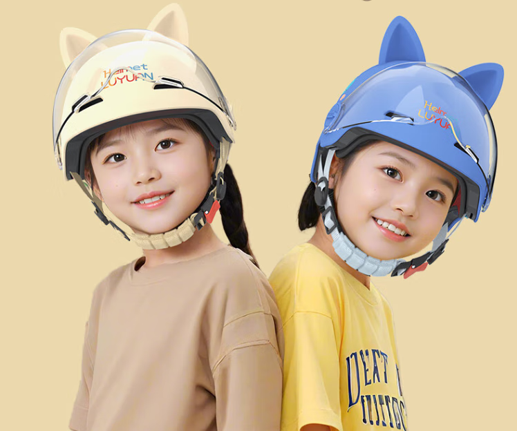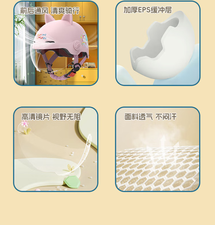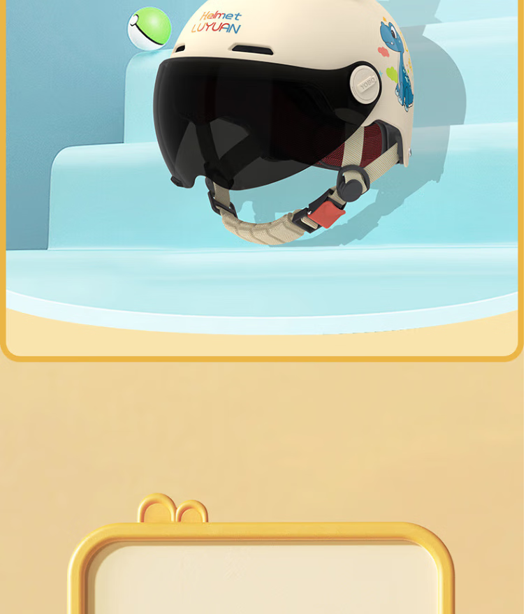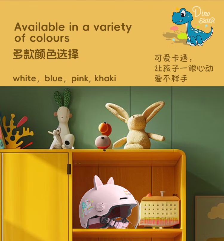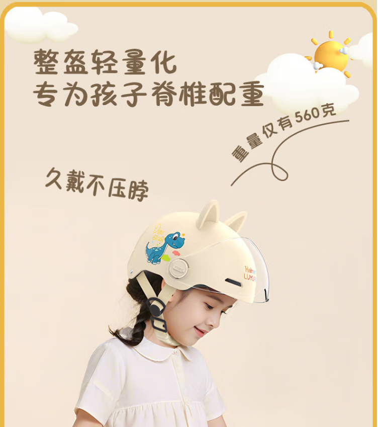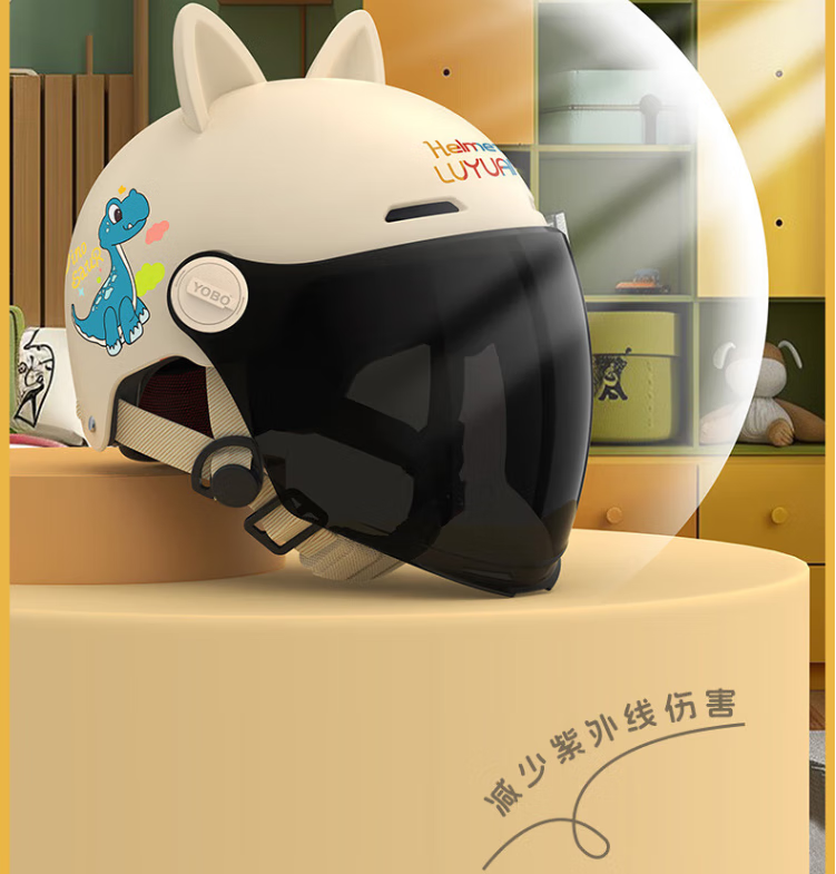绿源(Luyuan)儿童头盔电动车3c认证头电瓶车头盔儿童6-12岁小孩夏季盔防晒 粉色-彩虹马-【透明短镜片】 常规款