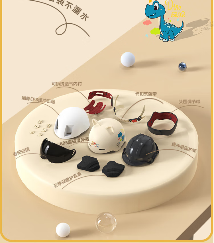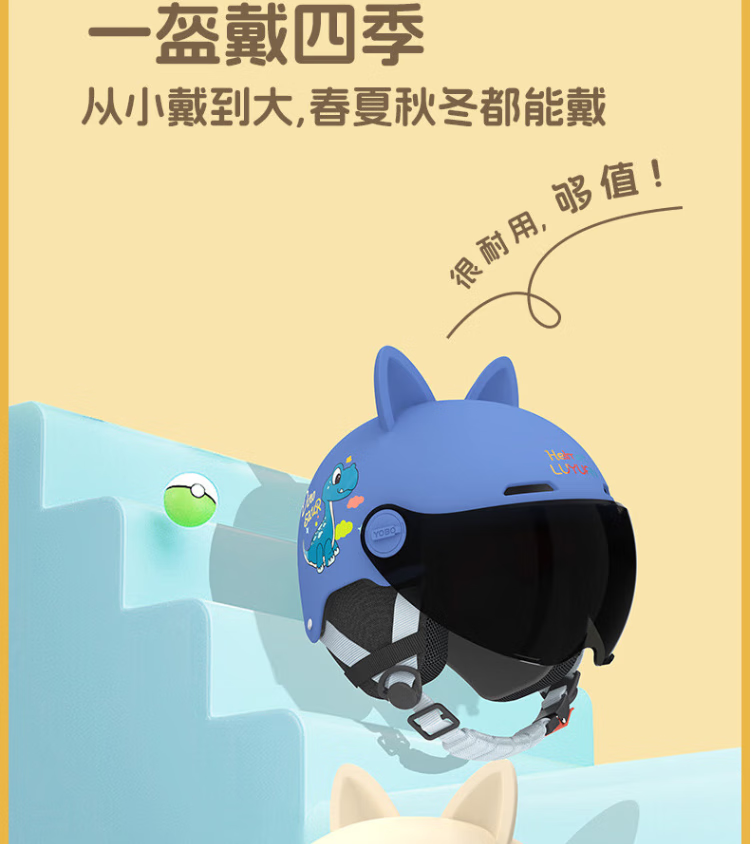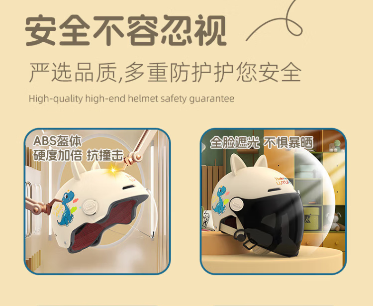 NBTK3C认证儿童头盔喝水头盔大镜片机车全盔摩托车鬼面盔亲子盔 恐龙 L(53CM-55CM)