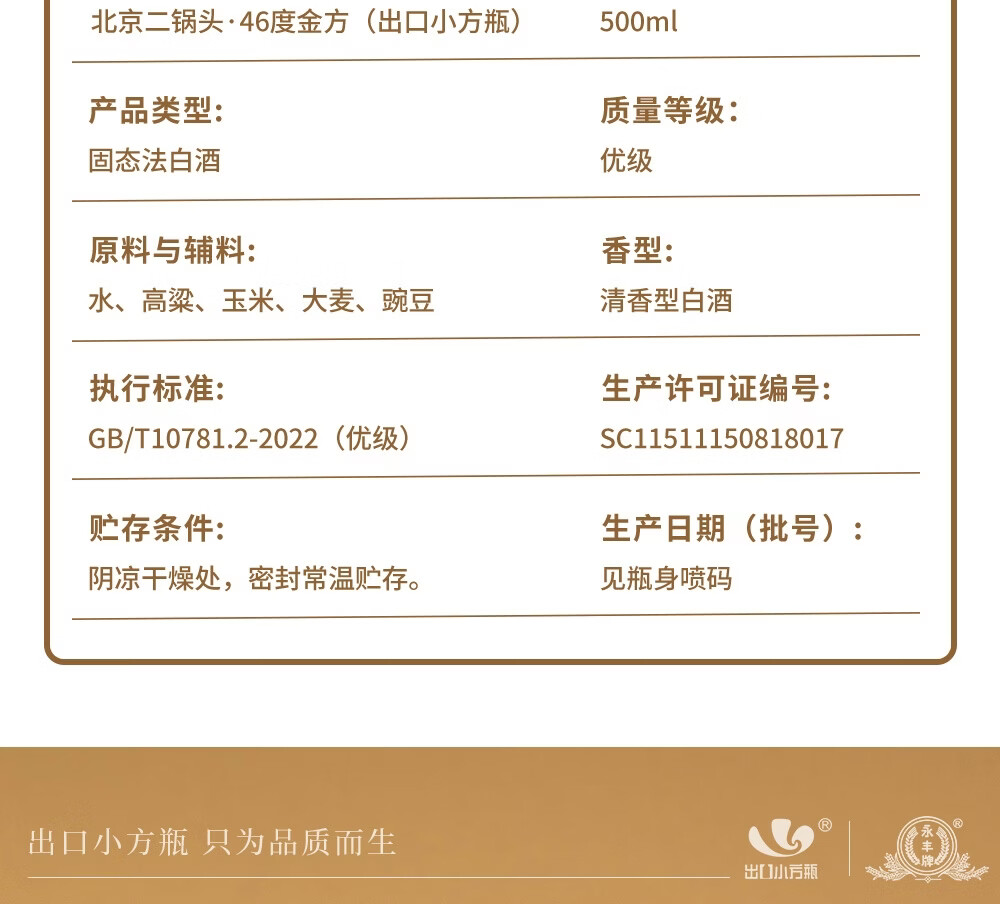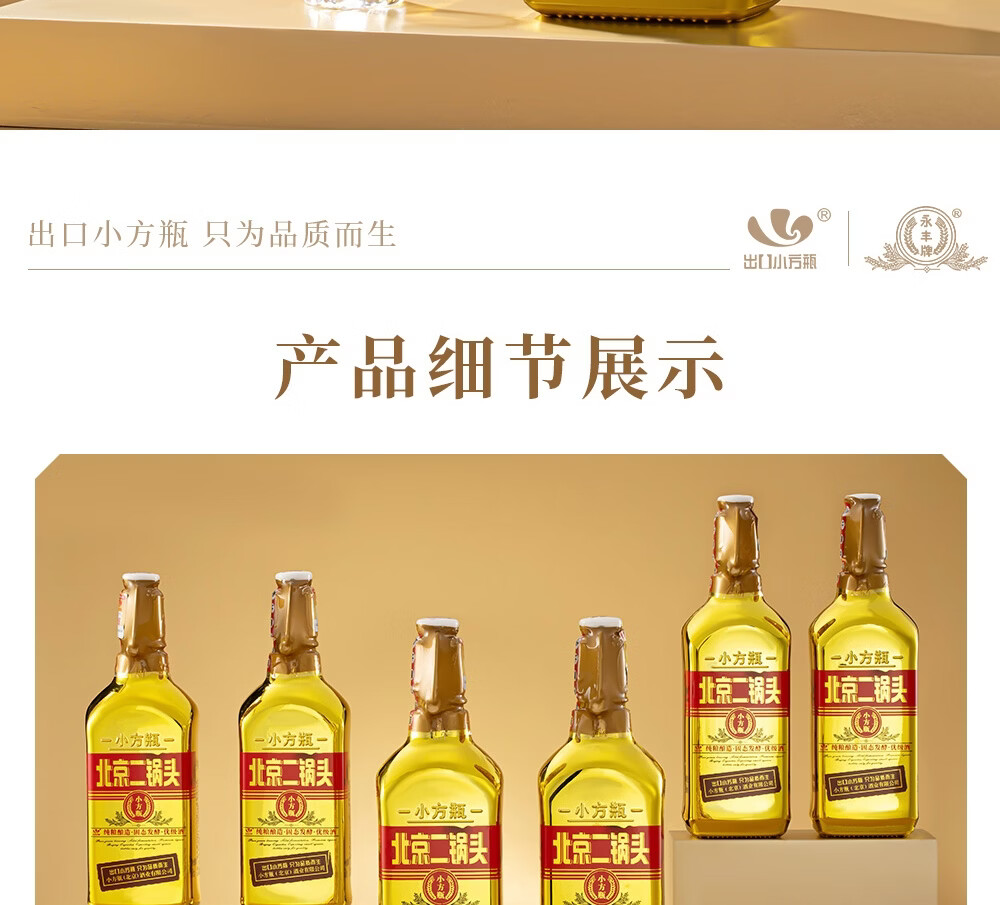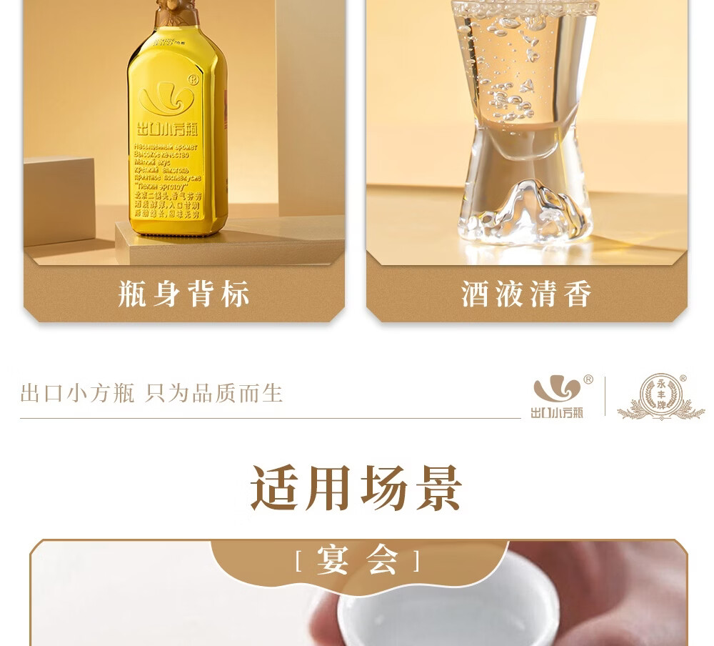 永丰牌北京二锅头小方瓶白酒整箱批发清香型自饮纯粮食口粮酒出口小方瓶 46度 500mL 6瓶 出口小方瓶金方