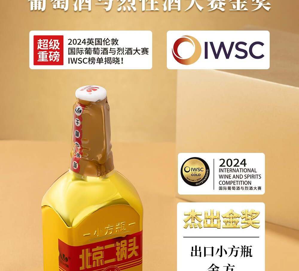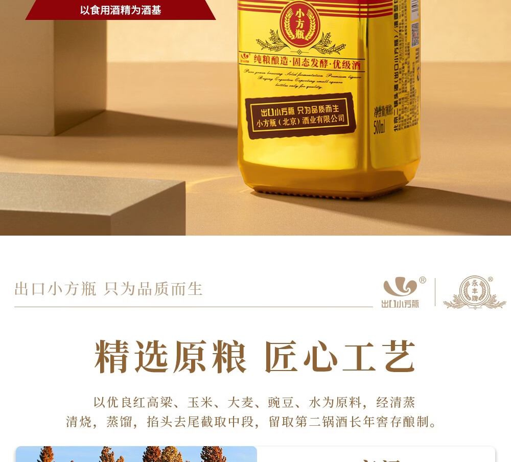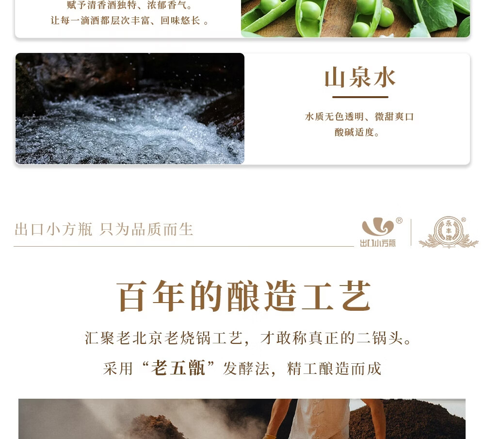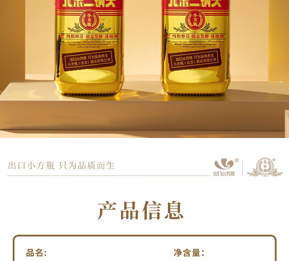 永丰牌北京二锅头小方瓶白酒整箱批发清香型自饮纯粮食口粮酒出口小方瓶 46度 500mL 6瓶 出口小方瓶金方