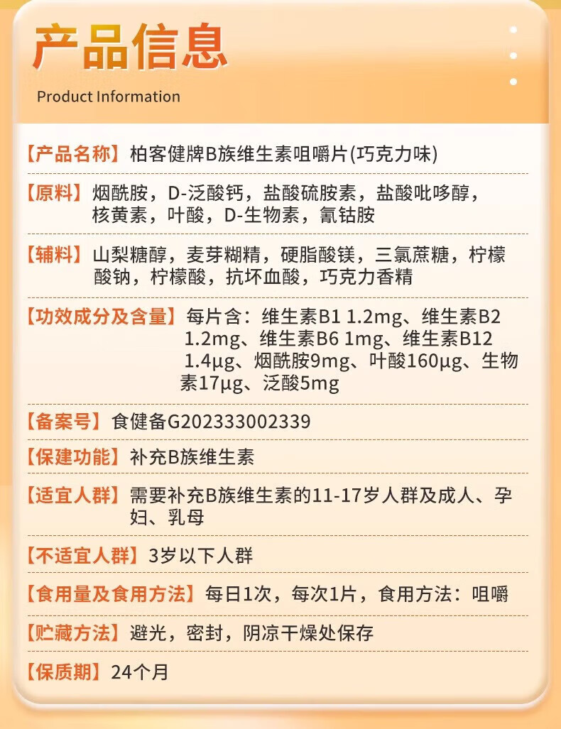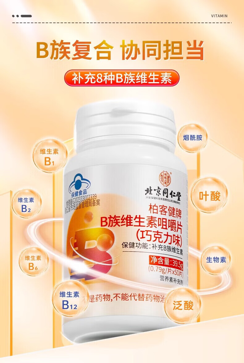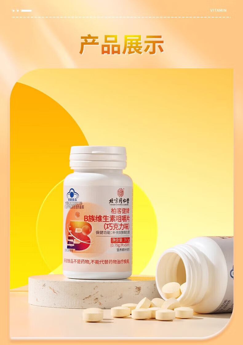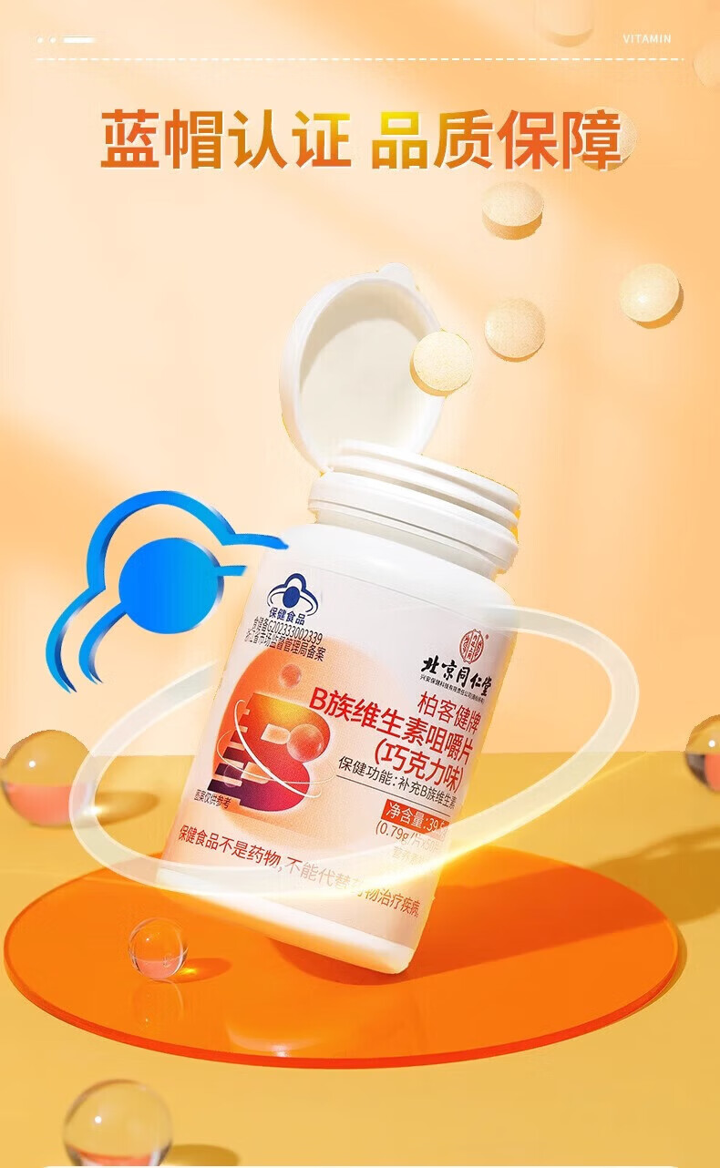 内廷上用B族维生素咀嚼片巧克力味补充b1b2b6b12儿童成人含叶酸咀嚼片 【1瓶体验装】 50片*1瓶