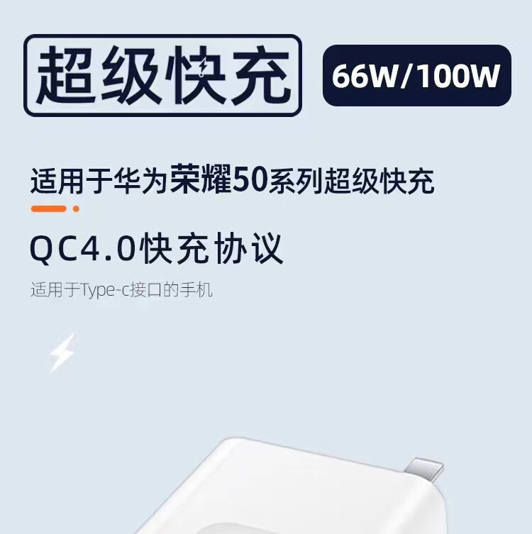 荣耀原装适用于荣耀50充电器66W瓦快充HONOR荣耀50se手机充电器max66W 适用荣耀50pro100W充电头+2米线