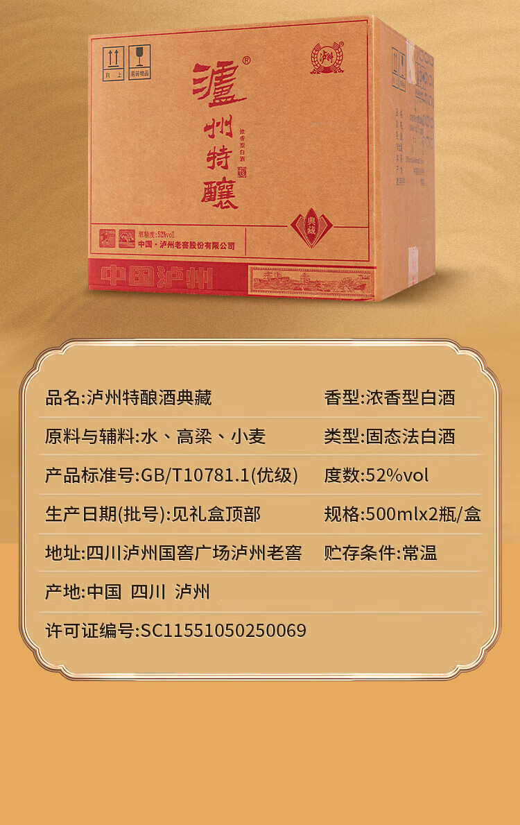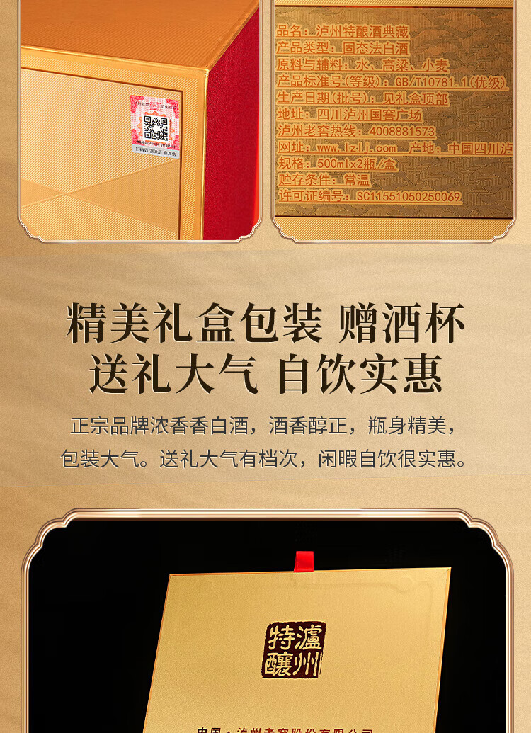 泸州老窖公司 浓香型白酒 粮食口粮酒礼盒装喜酒宴请节日送礼 52度 500mL 4瓶 原酿天典臻传上品