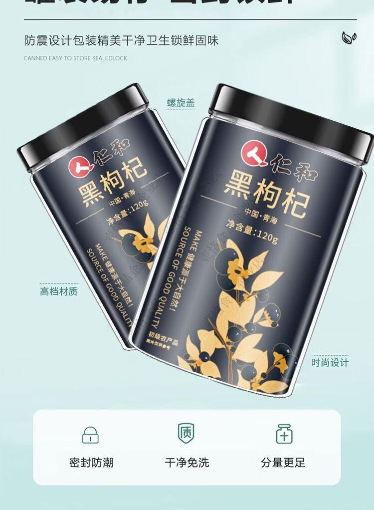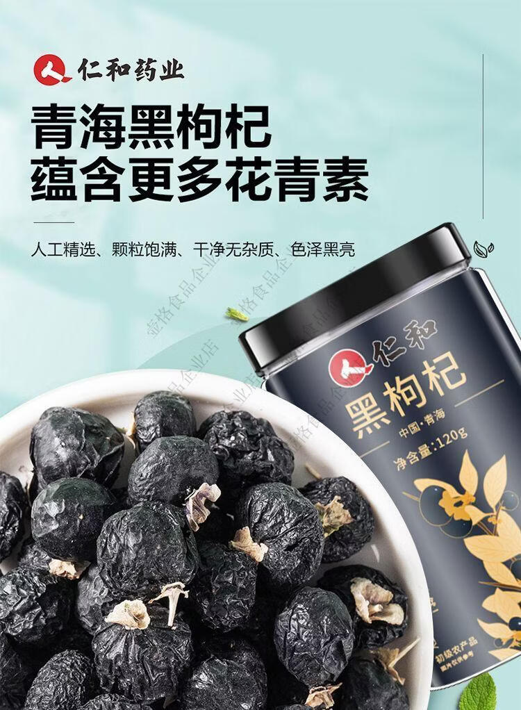 仁和天然黑枸杞野生正宗青海特级大果120g精选免洗泡水泡茶罐装 1支*1罐 黑枸杞1罐