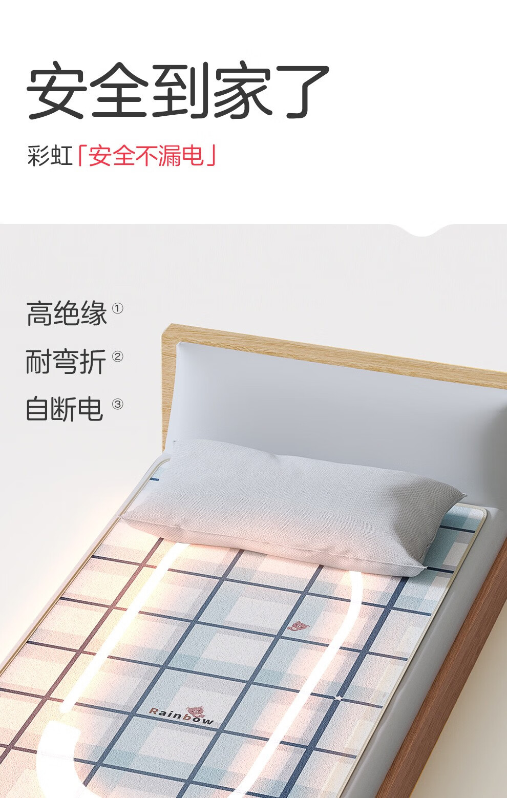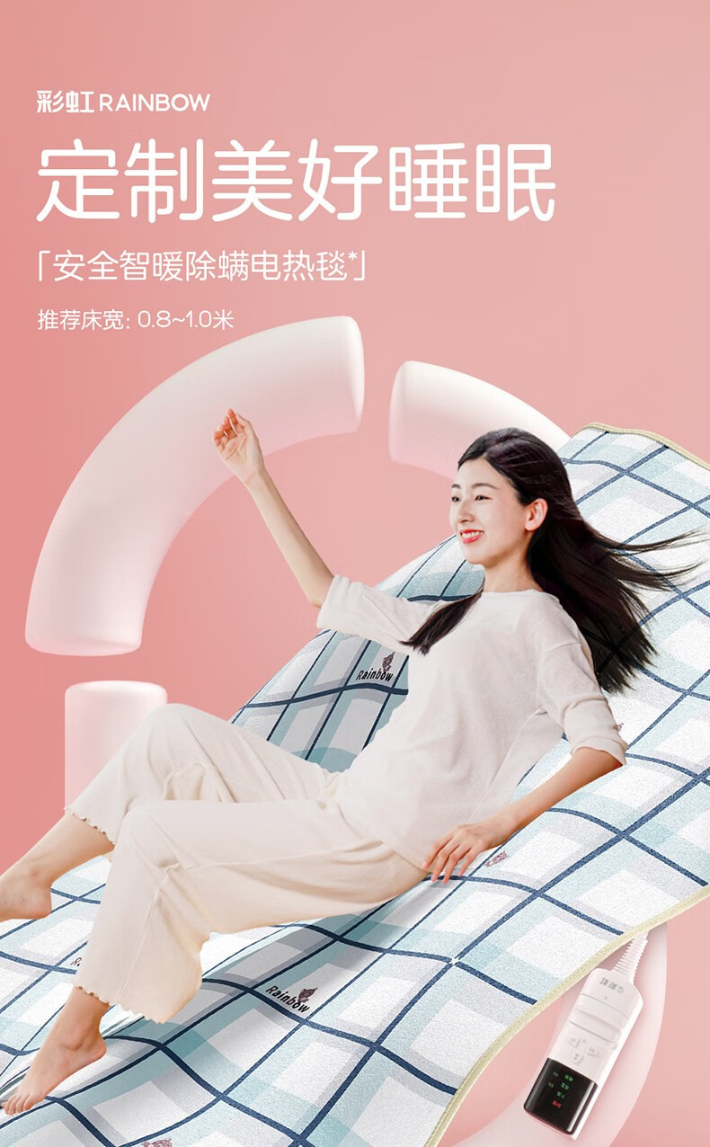 彩虹(RAINBOW)电热毯家用双人双控电褥子可定时除螨排潮电毯子小功率家用电暖毯 定时除螨1.8*1.2米