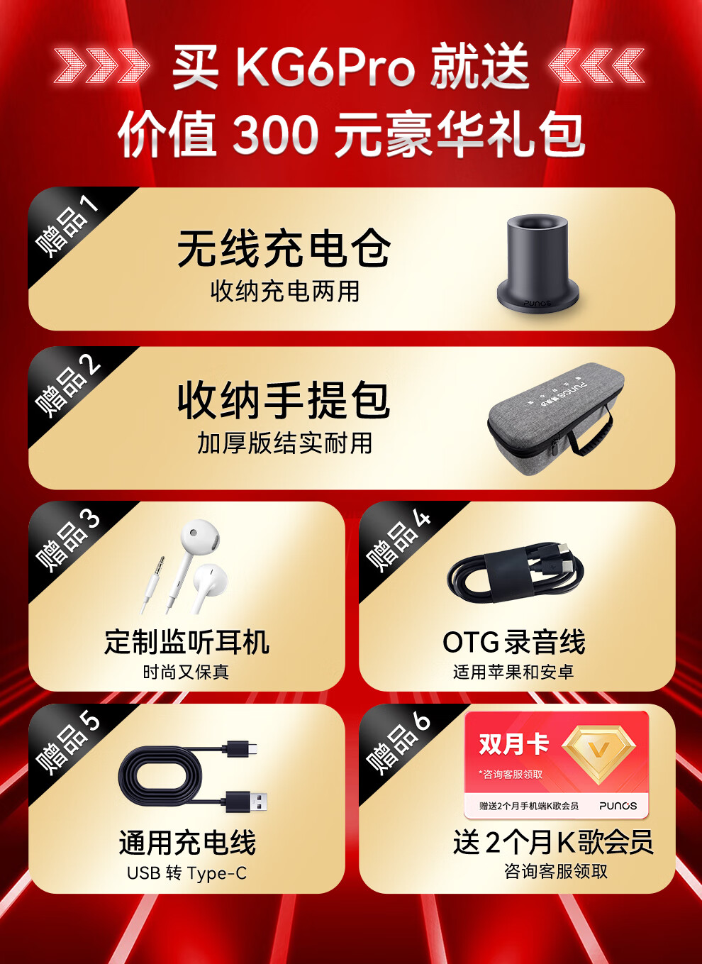 Punos/博浪沙【50W专业户外无线直播】全能主持k歌麦内置声卡音响一体麦克风蓝牙无线话筒双喇叭手机麦 KG6Pro旗舰版【双无线小精灵+专业版所有配件】