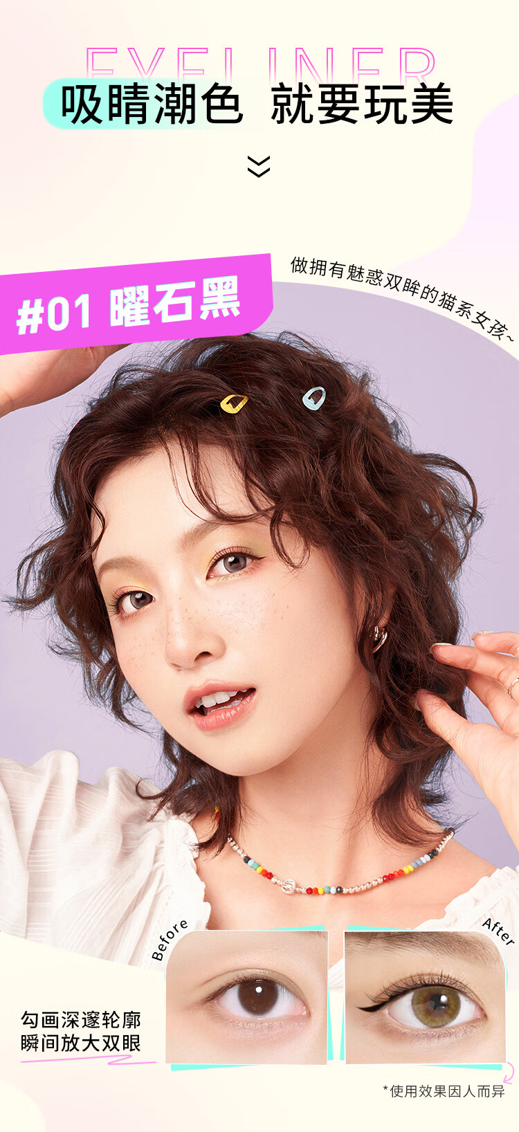 奇士美(kiss me) 花盈美蔻盈美柔滑液体眼线笔升级版0.4ml曜石黑笔芯极细不易晕染