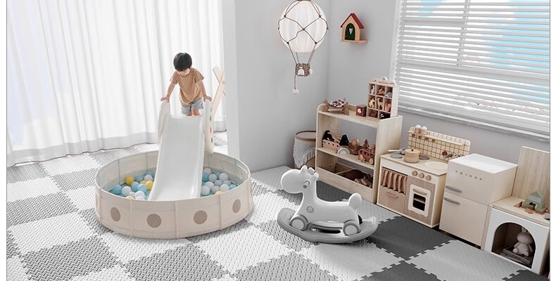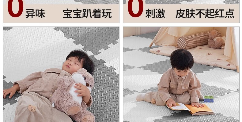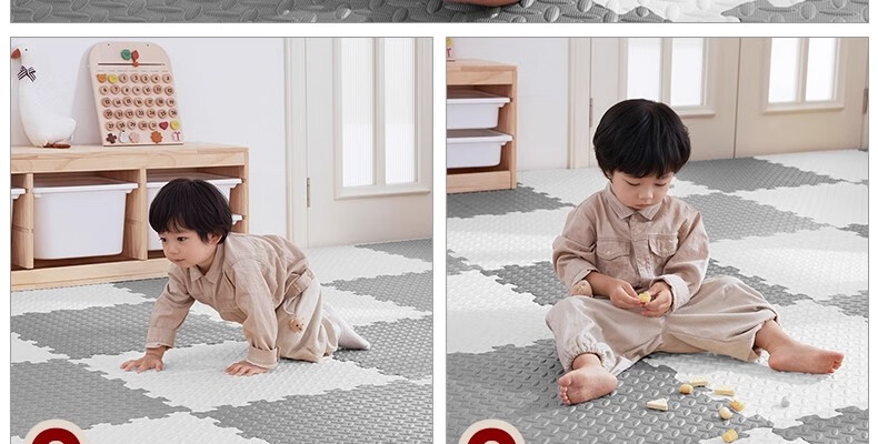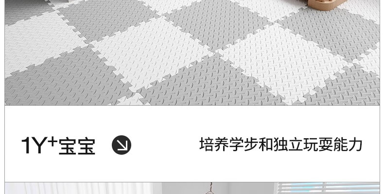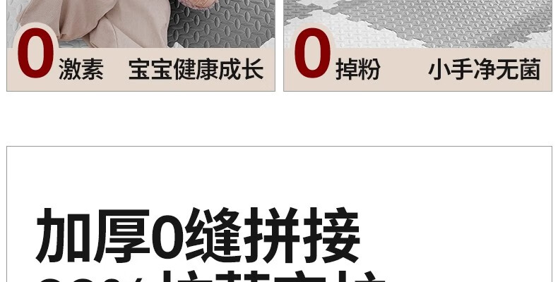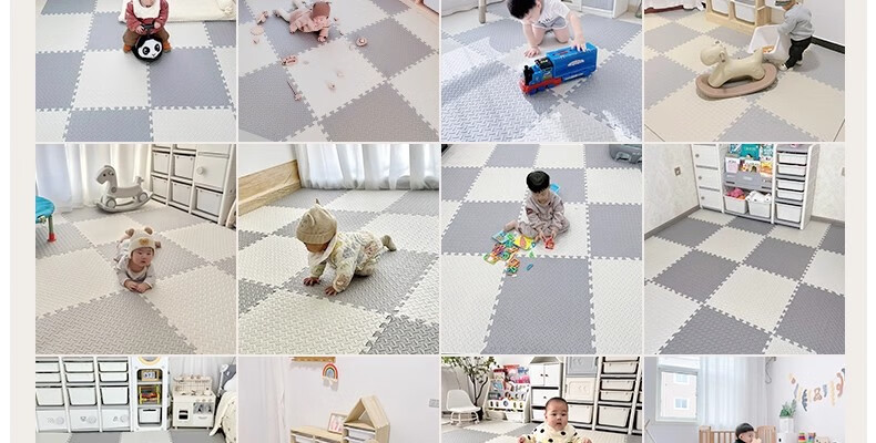 SEBAMHO 香巴赫德国泡沫地垫宝宝爬爬垫家用加厚婴儿无甲醛爬行垫卧室防摔海绵垫 米+白+粉+紫-送边条【99.9%抗菌0重金属】 30cm*30cm 【40片/2025甄选母婴款-无甲醛】