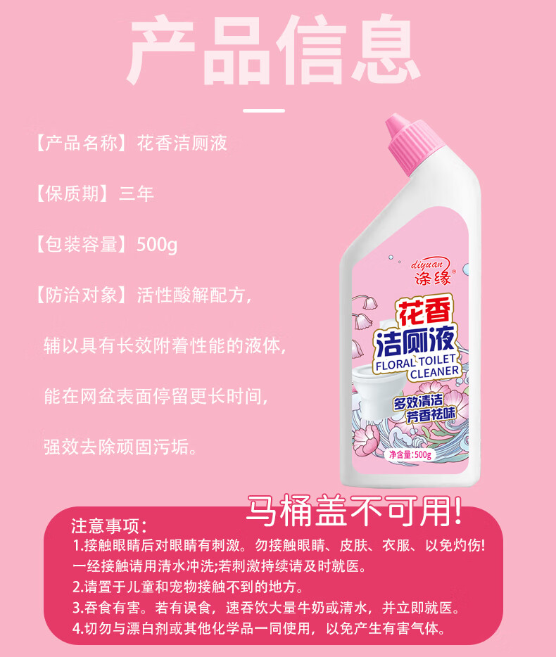 花香洁厕液多效清洁芳香祛味强力清洁马桶 花香洁厕一瓶体验装