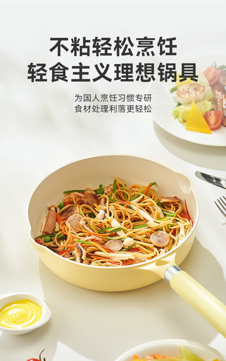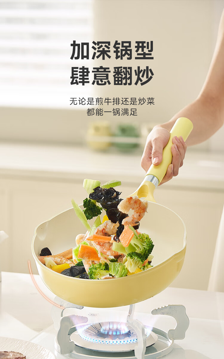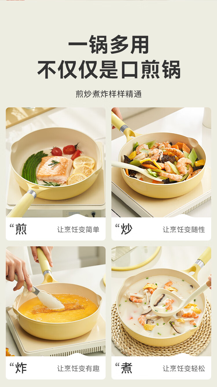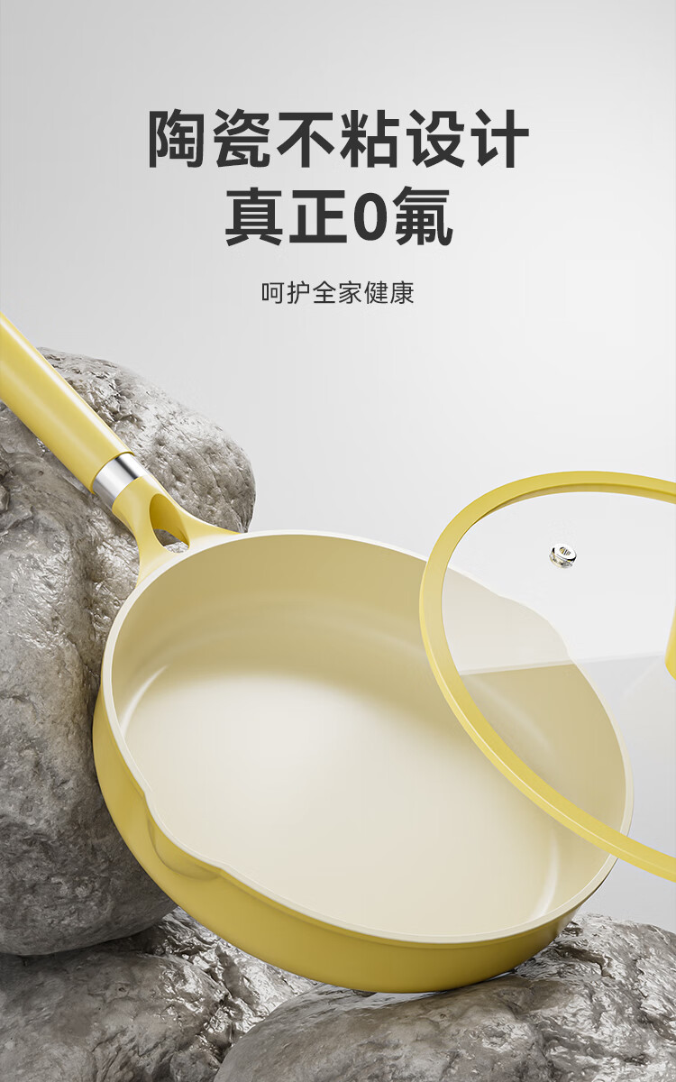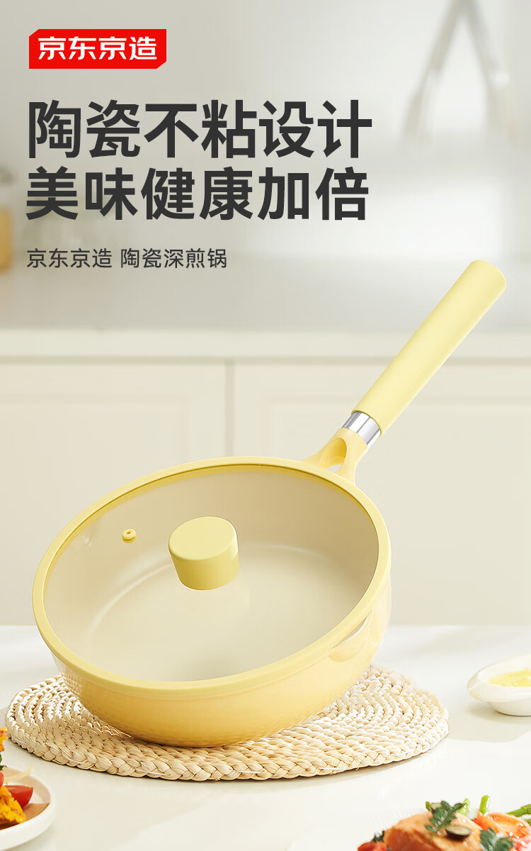 京东京造 平底锅 不粘煎锅牛排煎蛋神器早餐煎饼加深陶瓷锅24cm黄