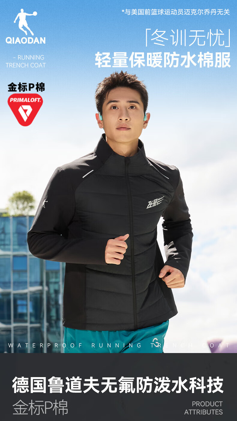 乔丹飞影金标P棉服男外套风衣冬季保暖防泼水运动夹克棉衣Primaloft 黑色 L