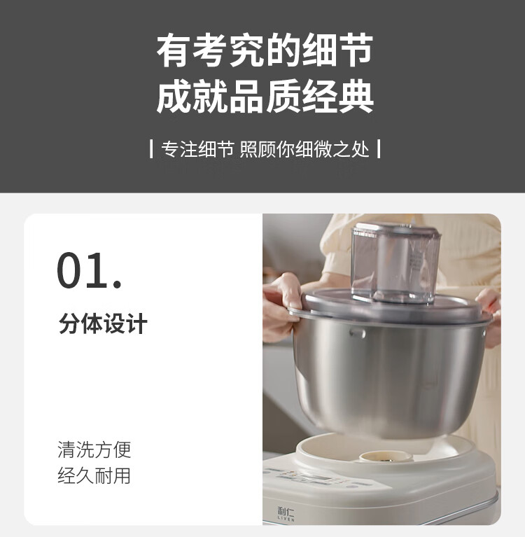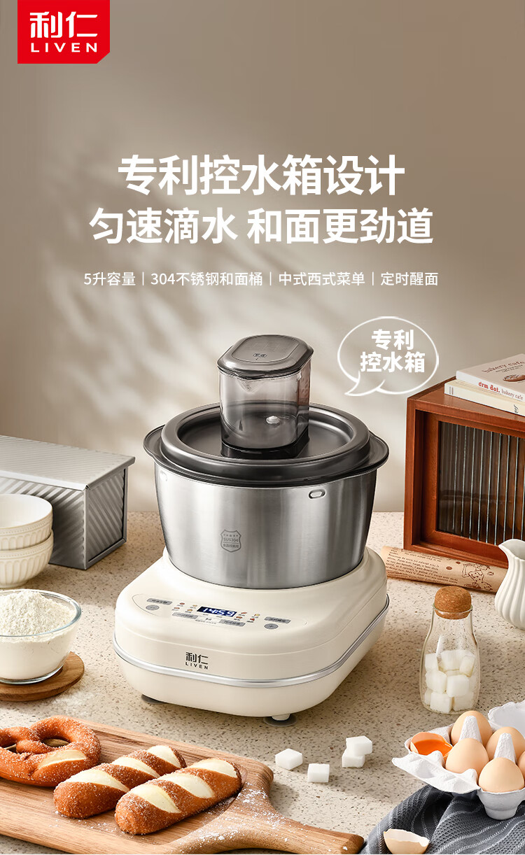 利仁(Liven)2025新款和面机家用全自动和面揉面一体机5L专利控水箱厨师机发酵发面搅面机面包面食机HMJ-D5621