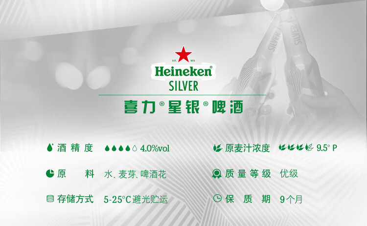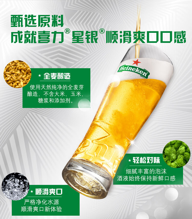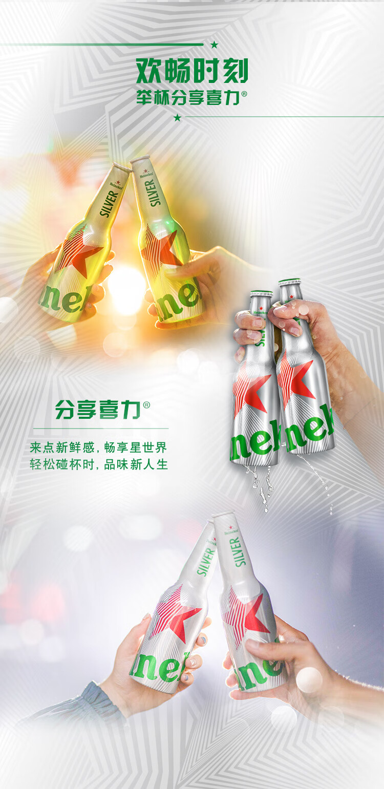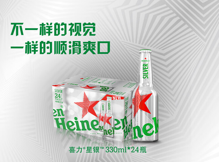 喜力星银铝瓶330ml*24瓶整箱装 喜力啤酒 婚宴用酒 新年送礼