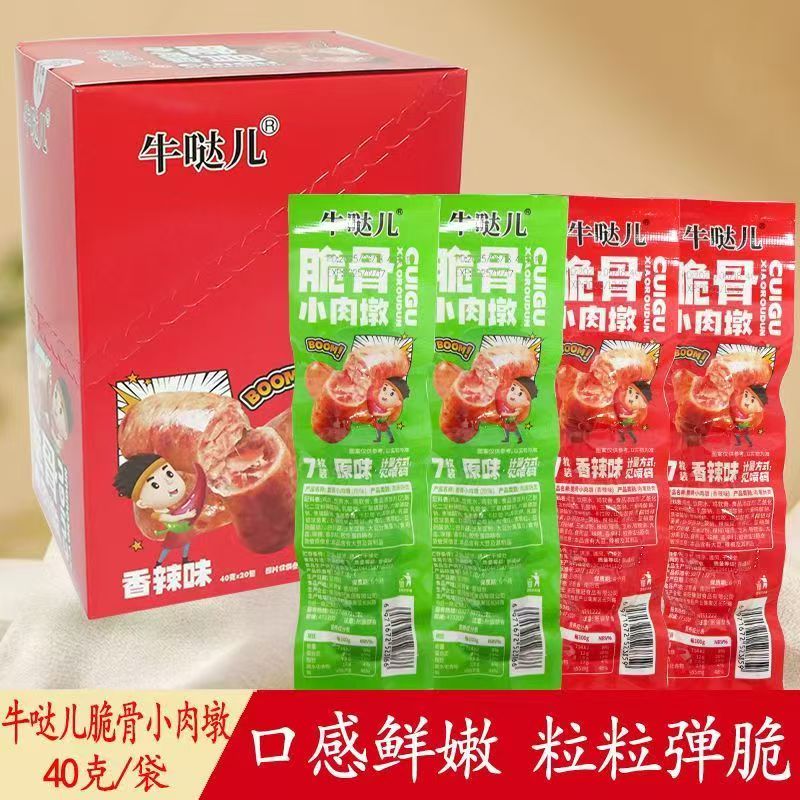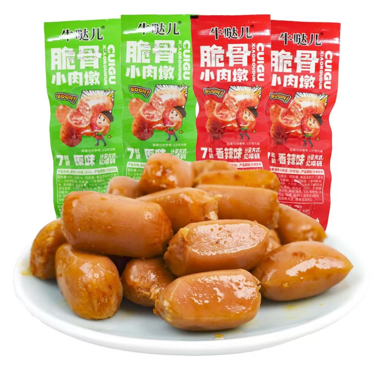 牛哒儿脆骨小肉墩40g香辣原味香肠鸡肉即食迷你火腿肠休闲零食 脆骨小肉墩40g原味 3包