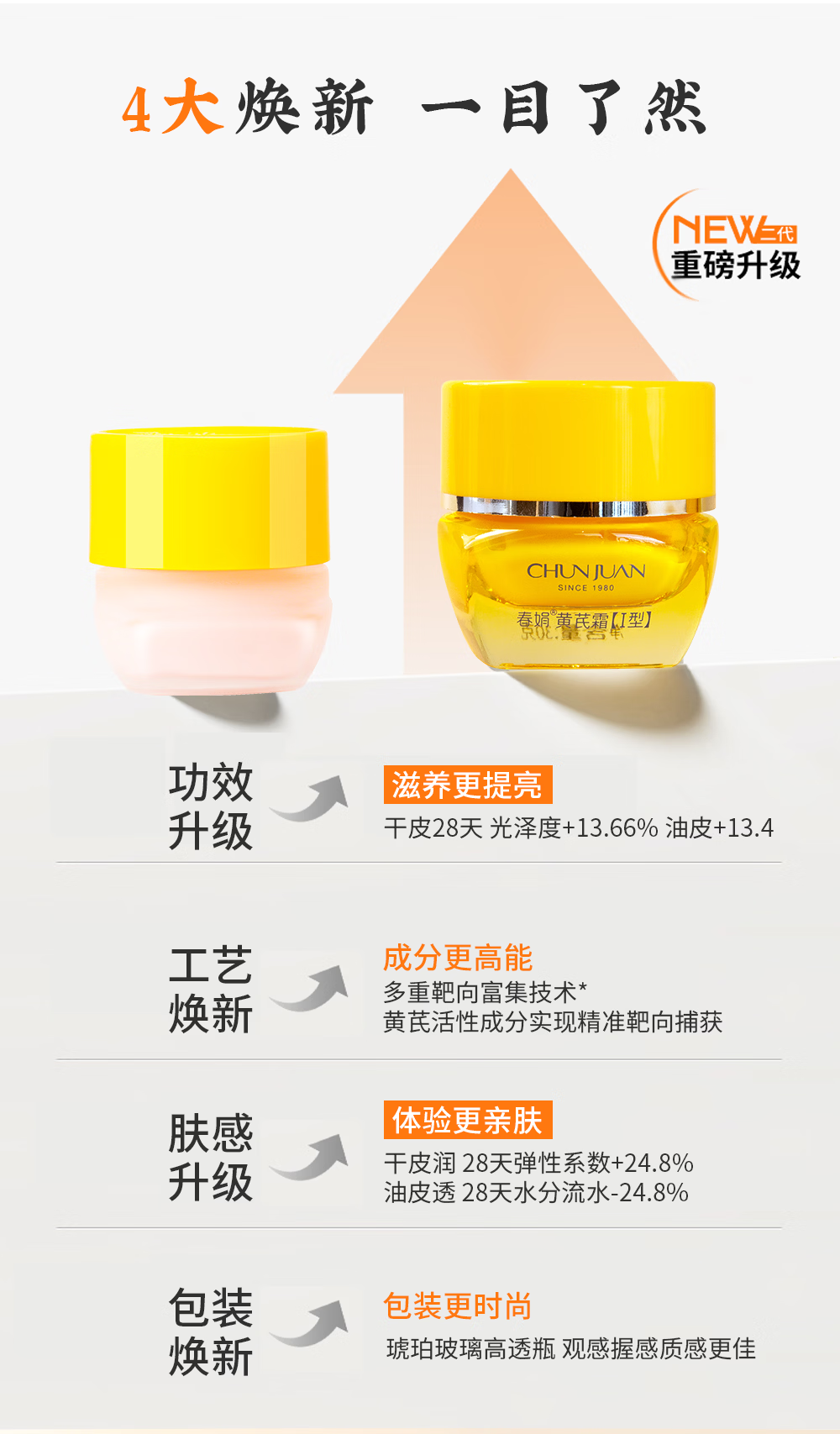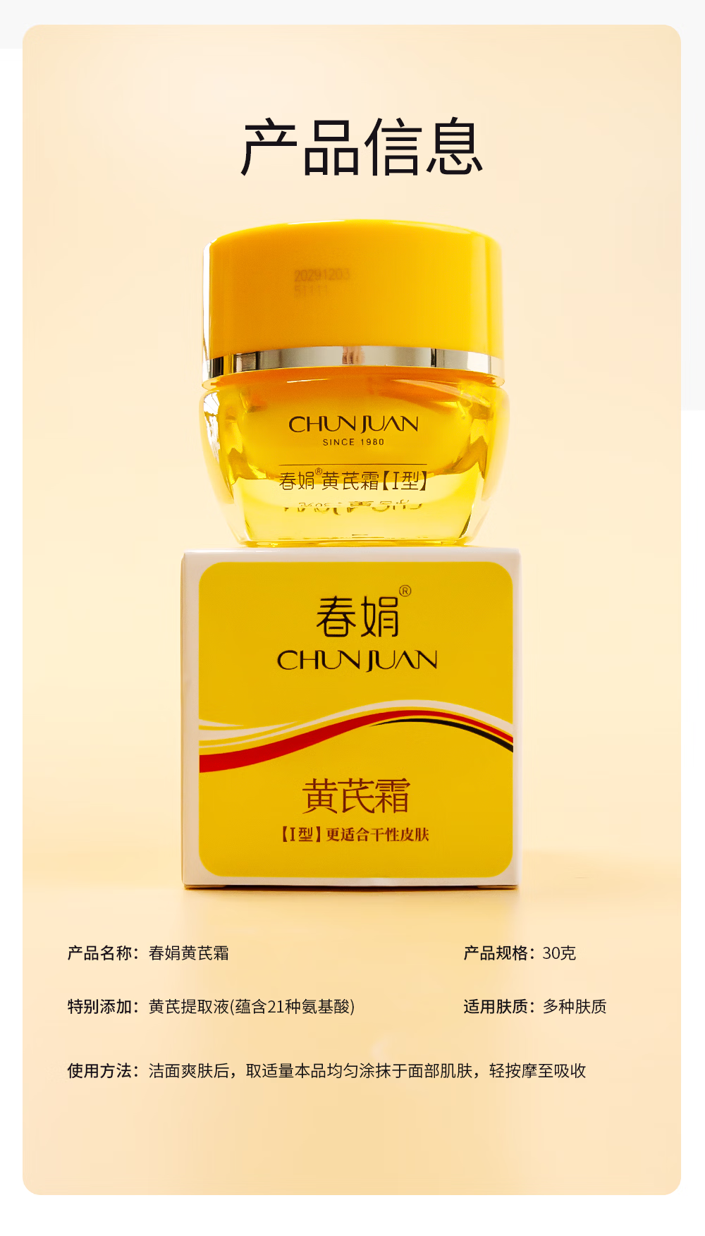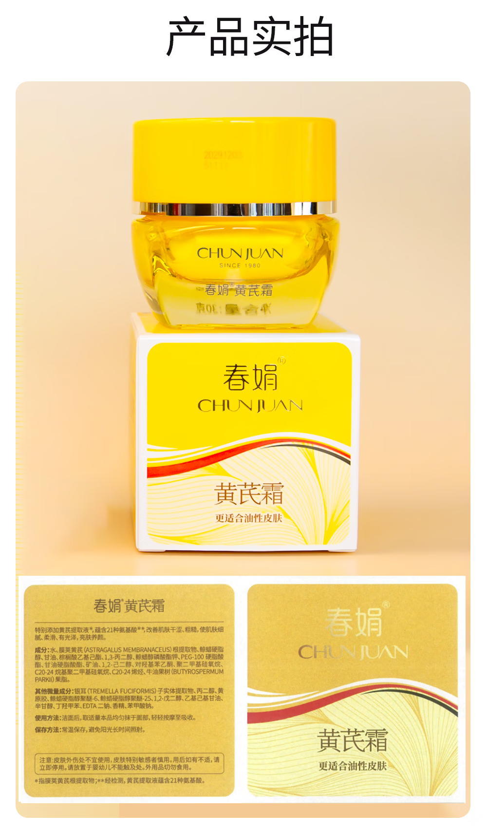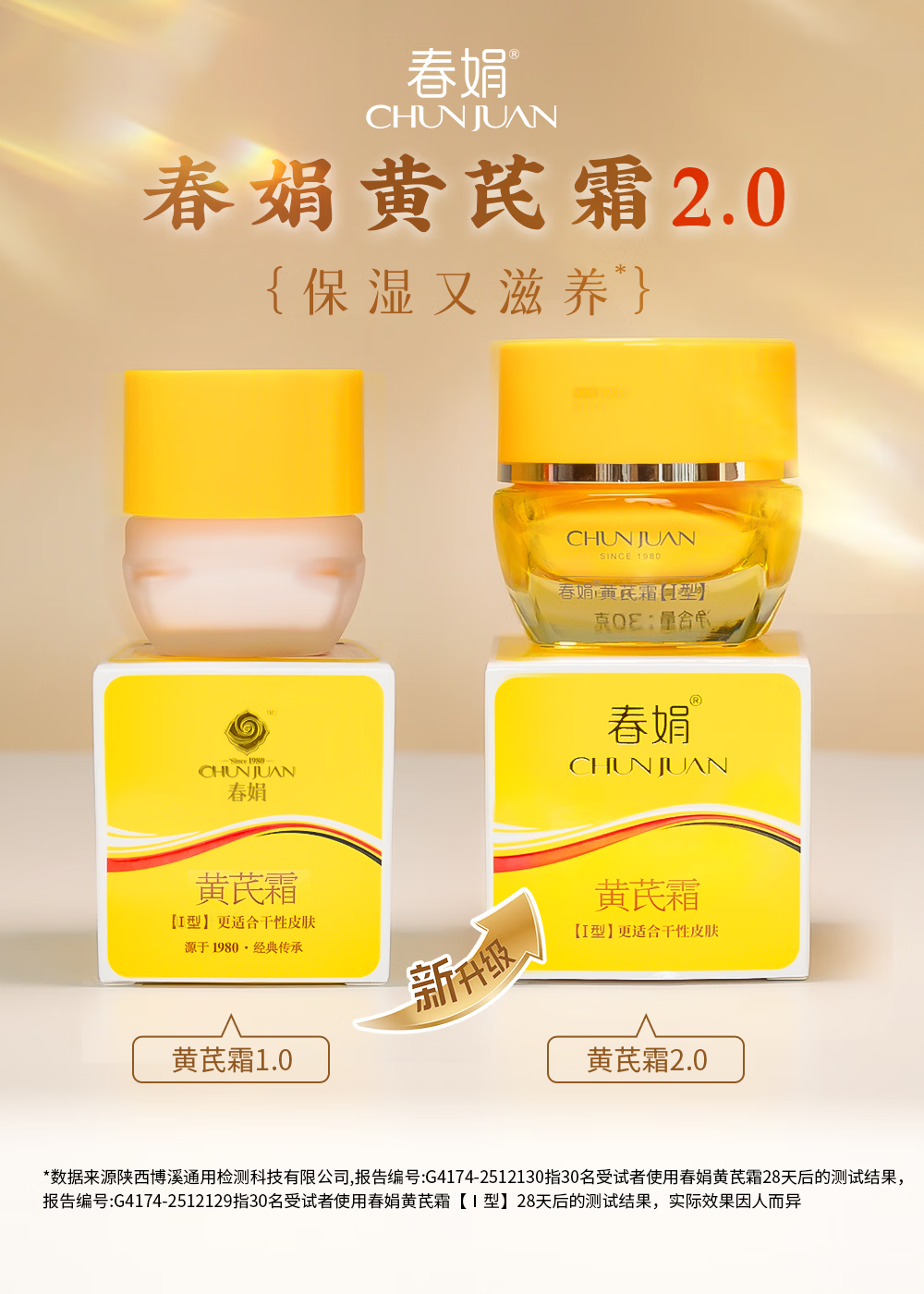 春娟黄芪霜新升级滋润保湿补水经典老牌国货面霜护肤品脸霜滋养修护 干皮/秋冬/滋润型2瓶装