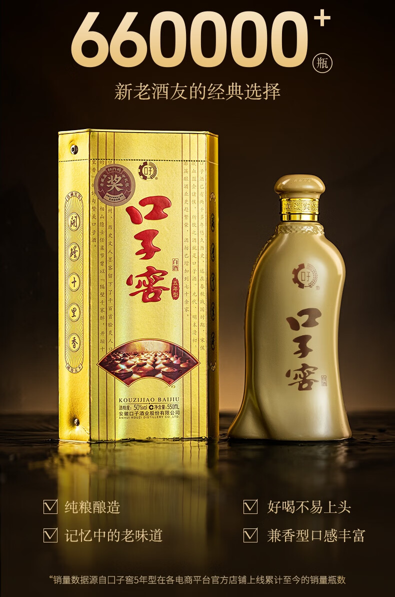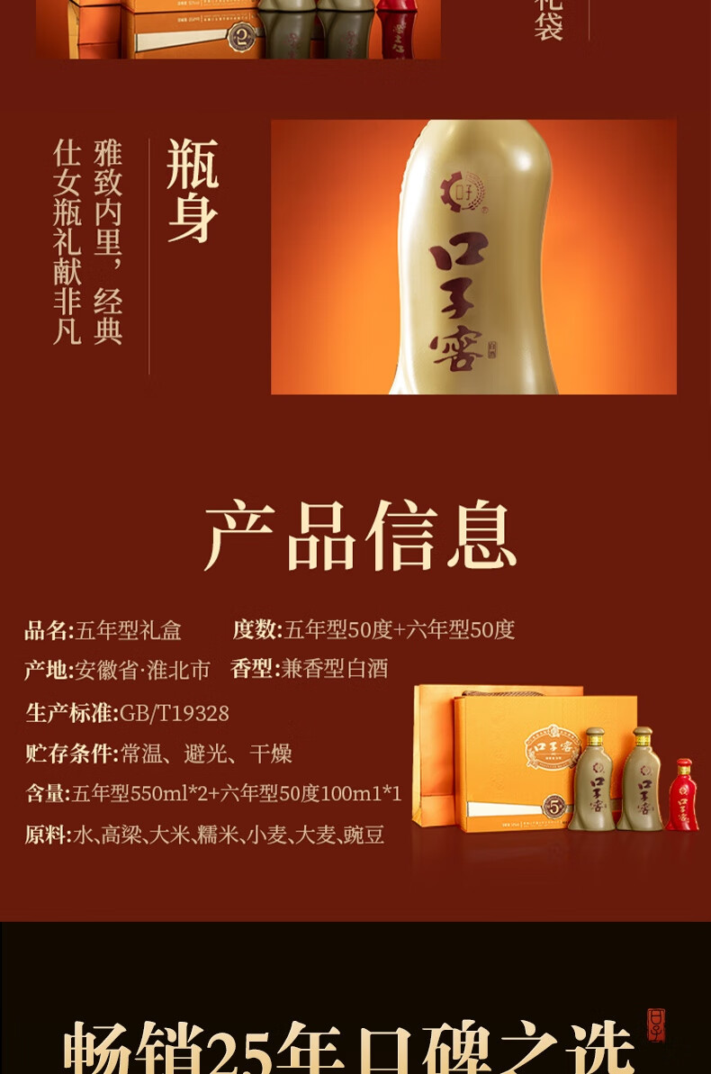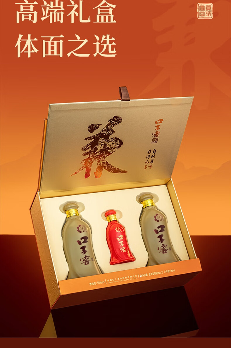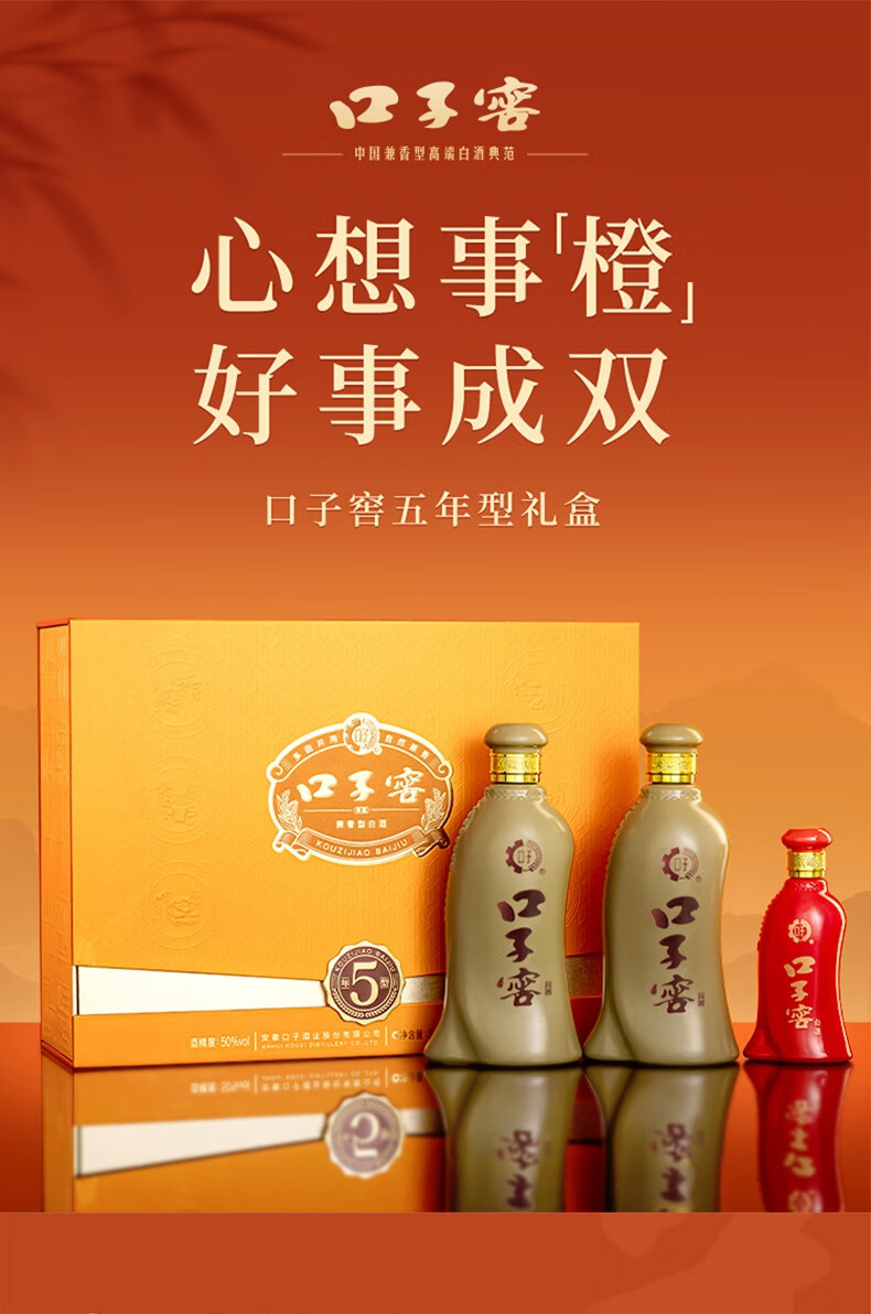 口子窖 五年型 兼香型白酒 50度 550ml*2瓶 礼盒装 年货送礼