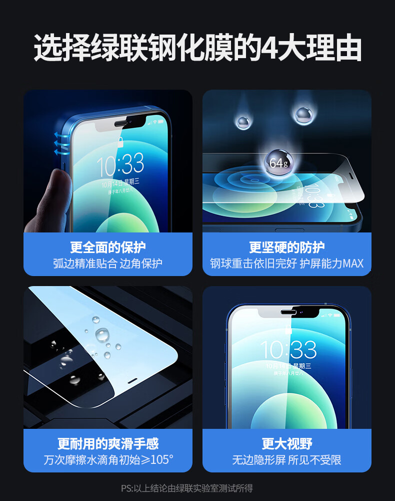 绿联 适用苹果12/12Pro钢化膜iPhone12Pro手机保护贴膜防指纹防爆防摔全屏覆盖超薄无边高清膜-2片装