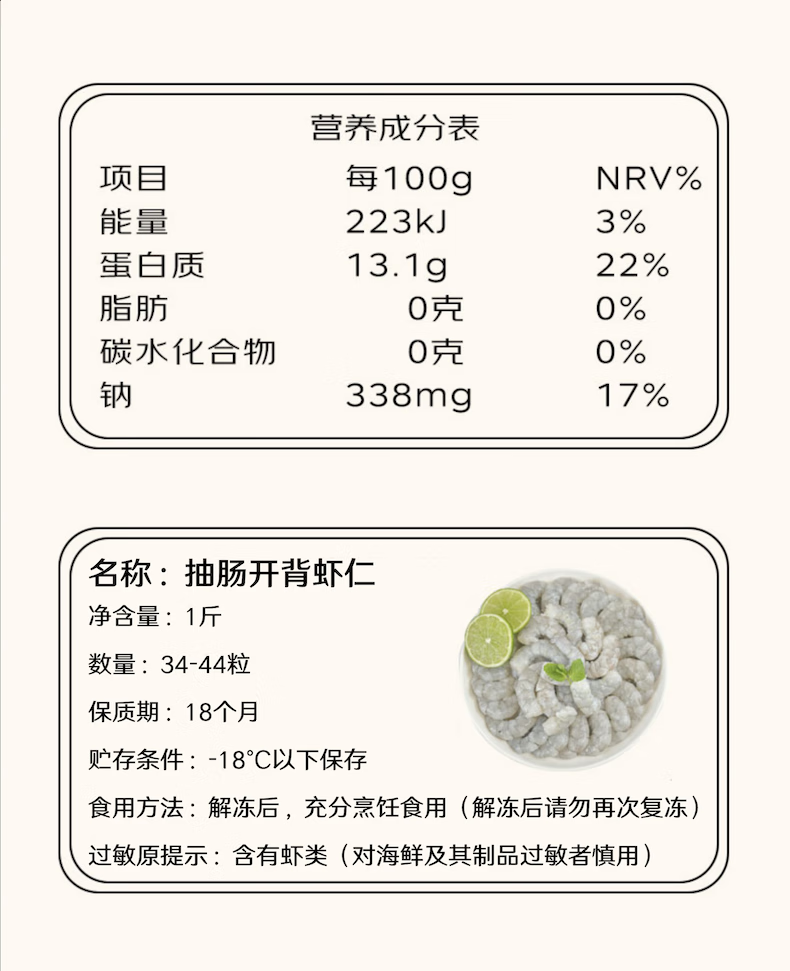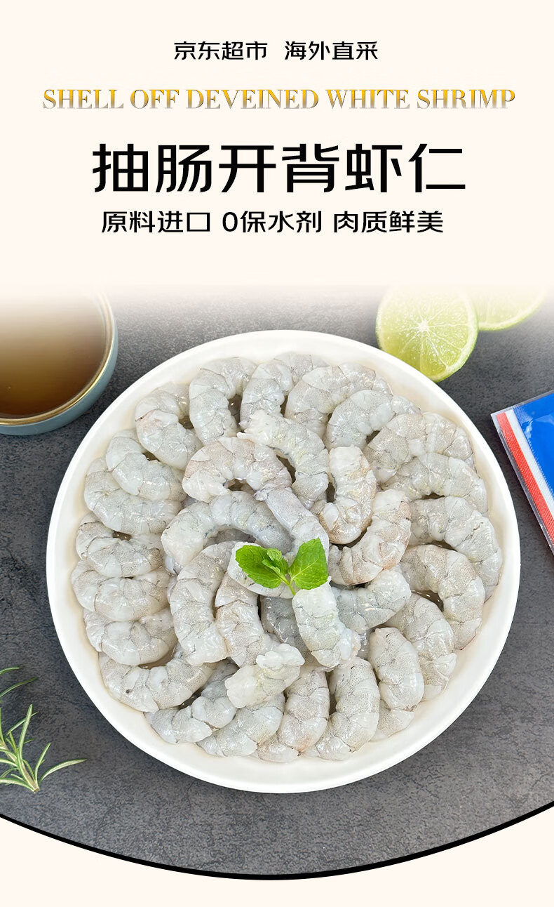 京东超市 海外直采 0保水剂厄瓜多尔虾仁1斤(33-45只 )自营海鲜火锅食材
