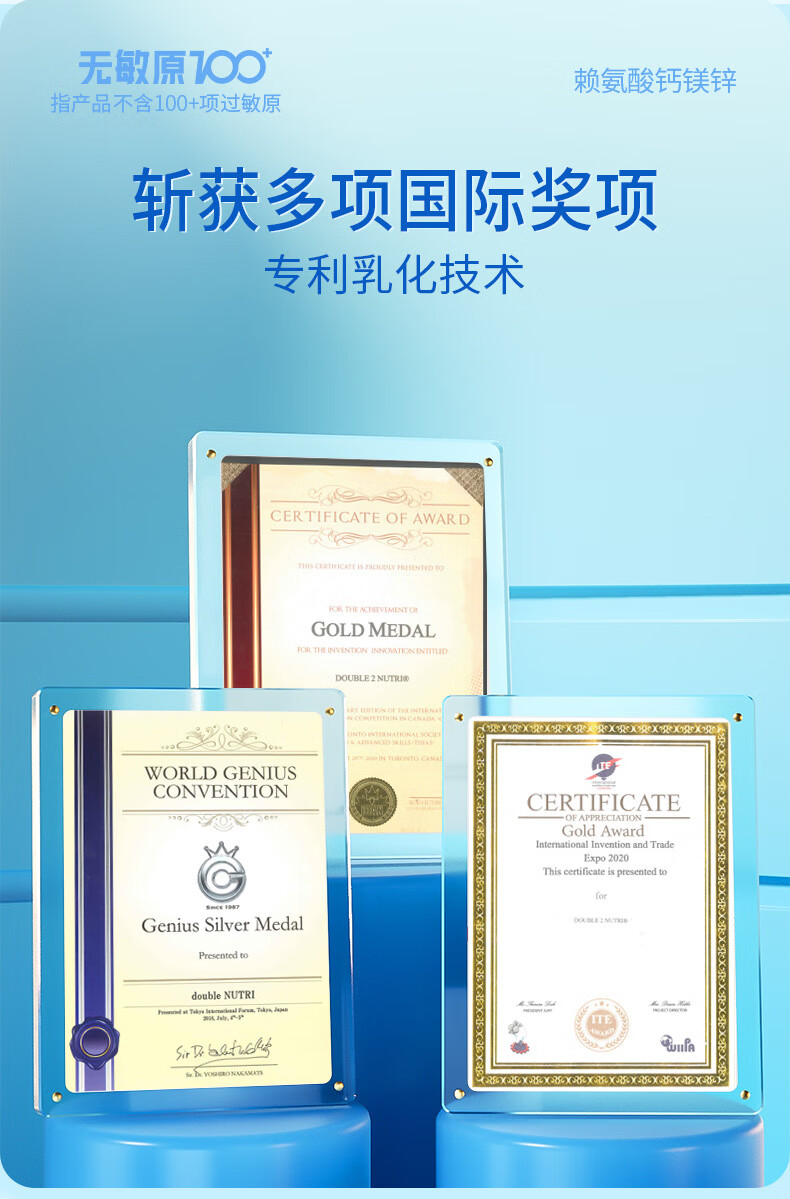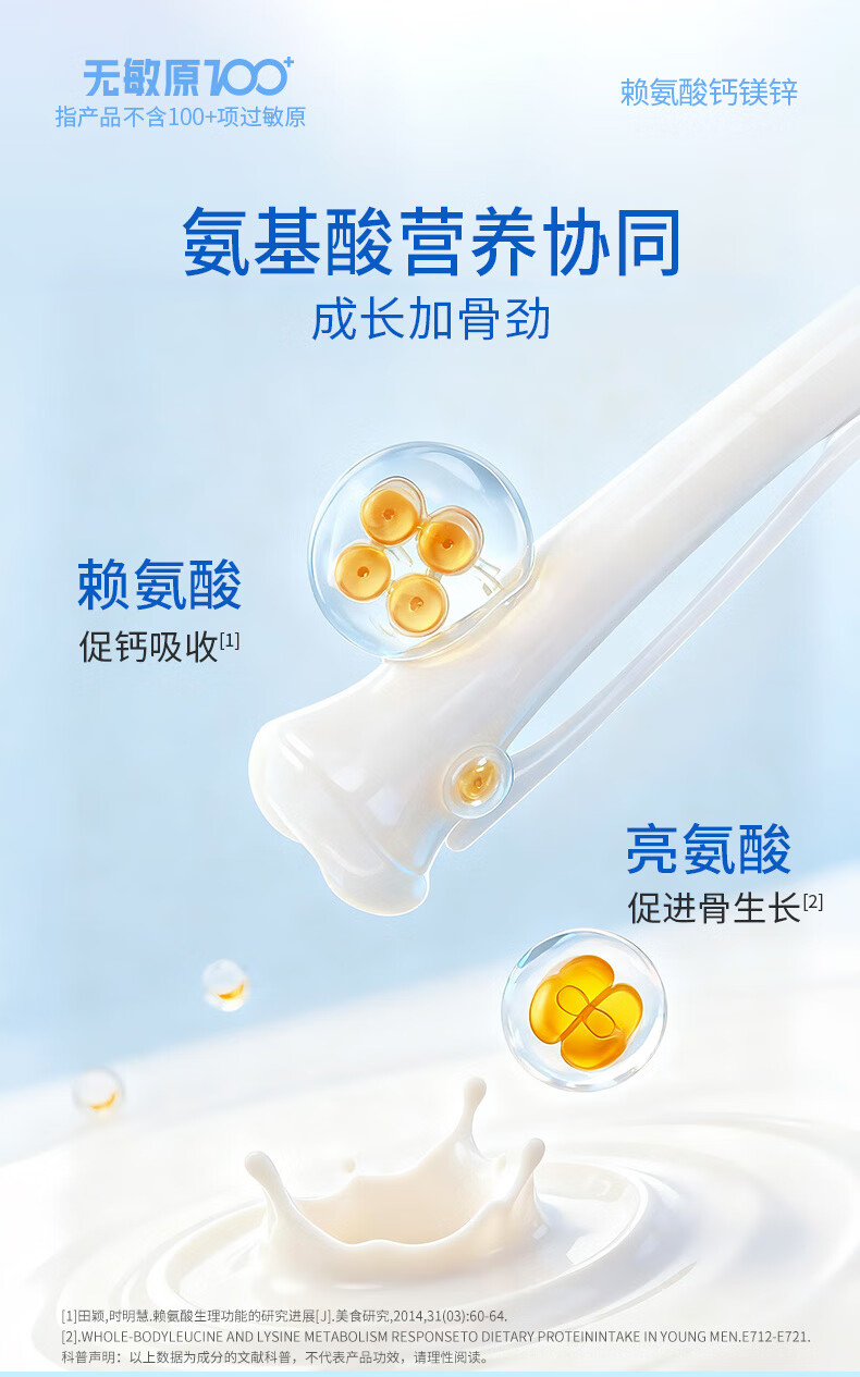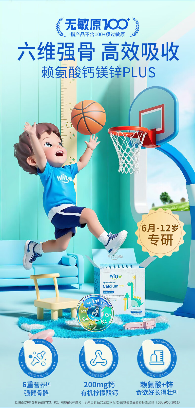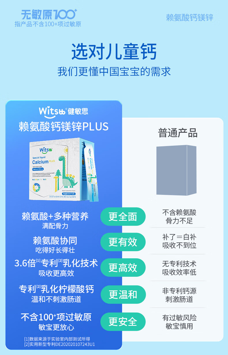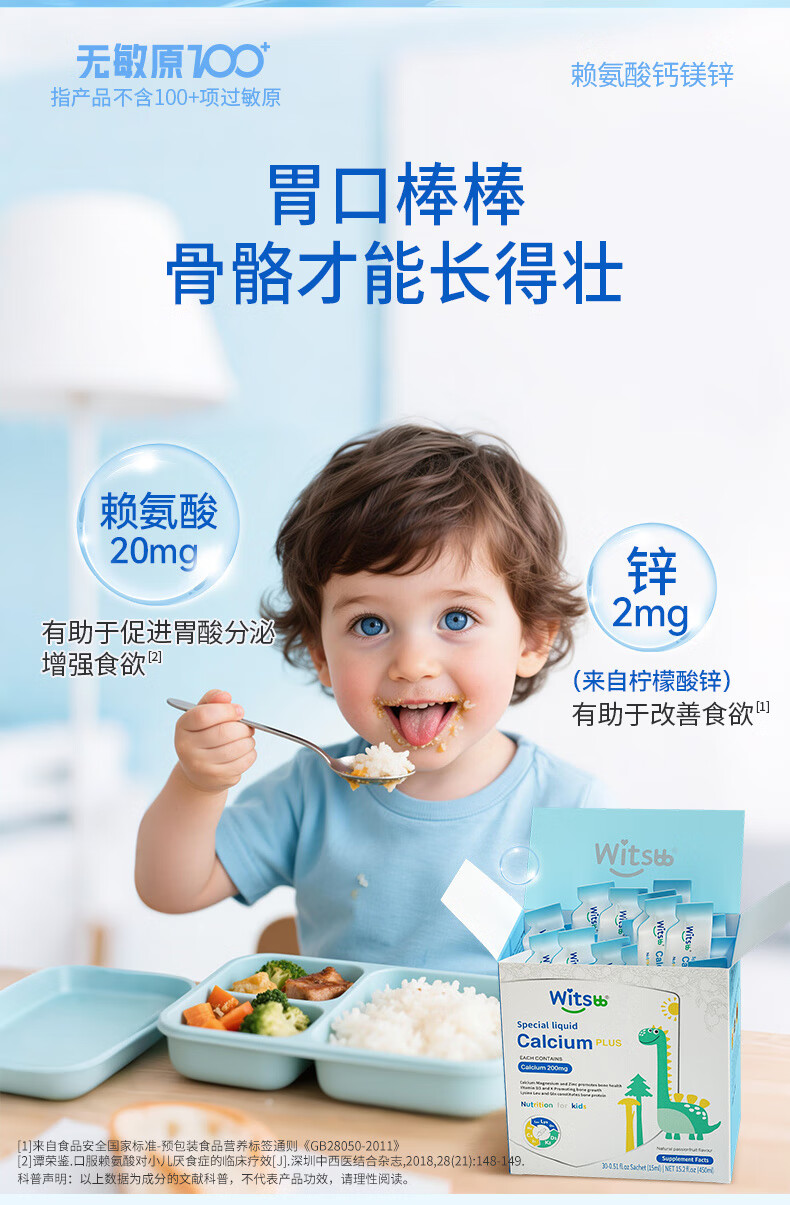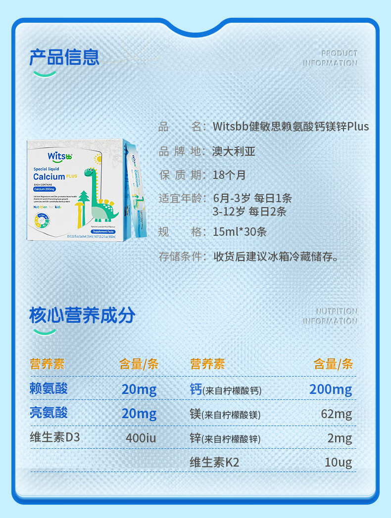 witsbb健敏思赖氨酸钙镁锌儿童液体钙6个月-12岁d3婴幼儿补钙30条*2盒