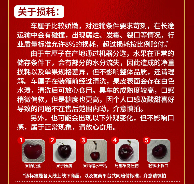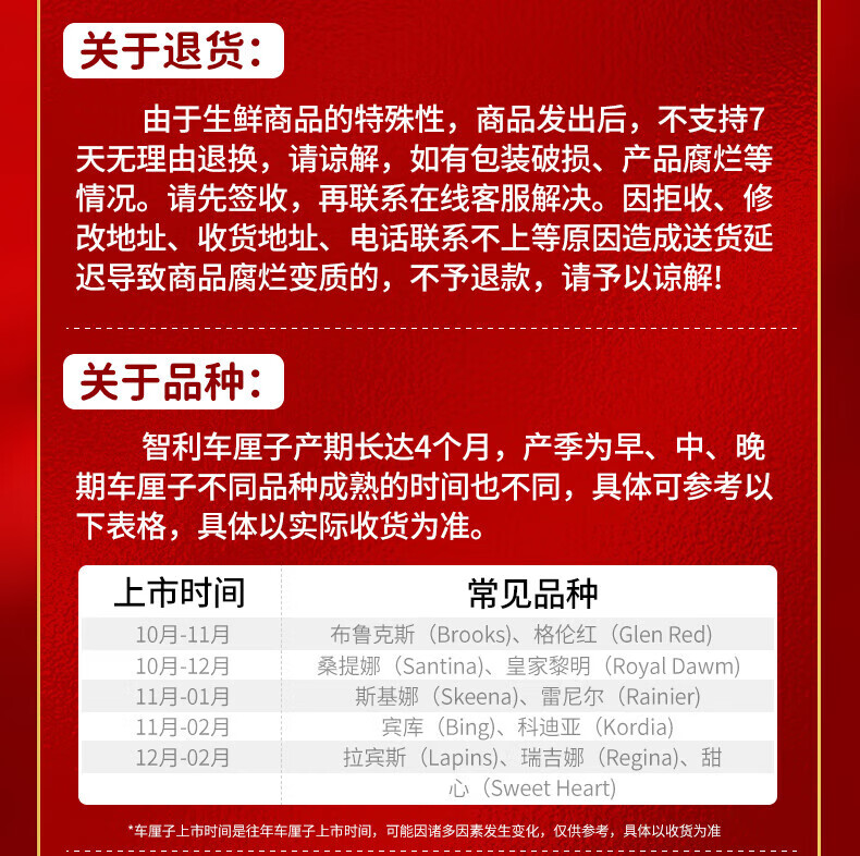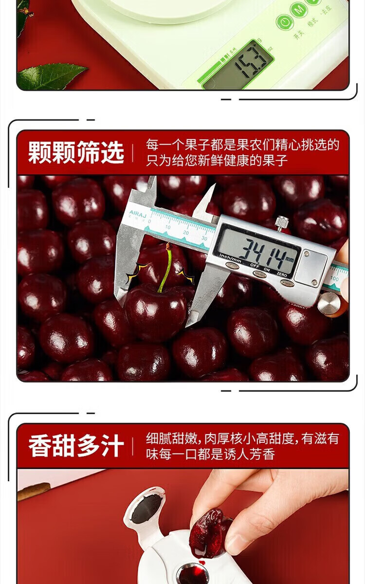 鲁禧海岸车厘子一箱5斤 车厘子4J级多规格大樱桃 进口水果礼盒 车厘子智利 5斤(净重) 丨智利原箱进口-不拆封更保鲜 【黑钻级|脆甜双绝】4J 超级果王 32-34mm*推荐