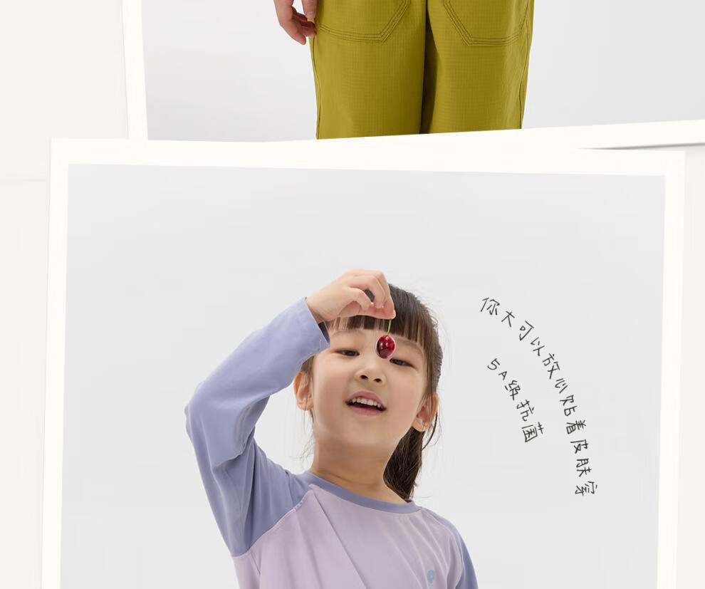 Q21直播蒲公英排汗速干亲子T恤男女童透气长袖秋季新款童装轻薄上衣 葡萄紫藤 160