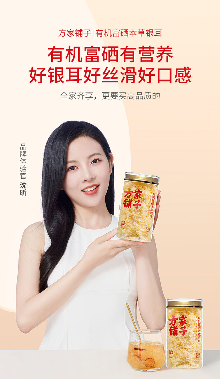 方家铺子有机富硒本草银耳80g/罐 古田白木耳银耳莲子百合羹代餐
