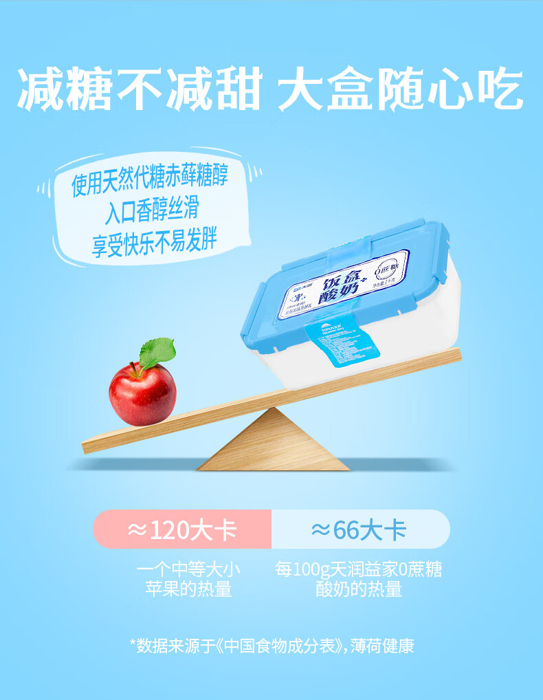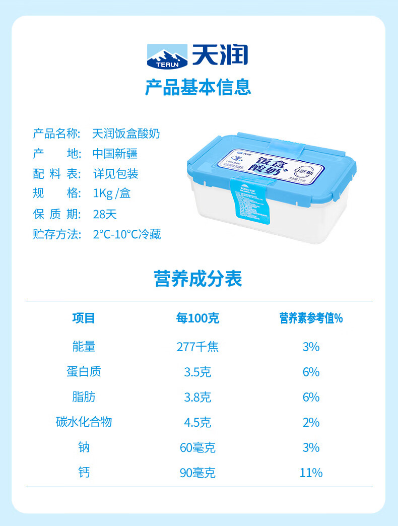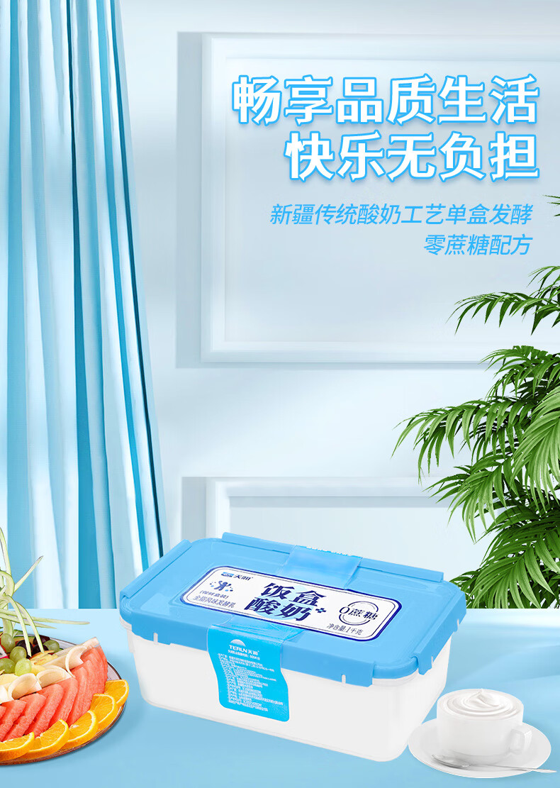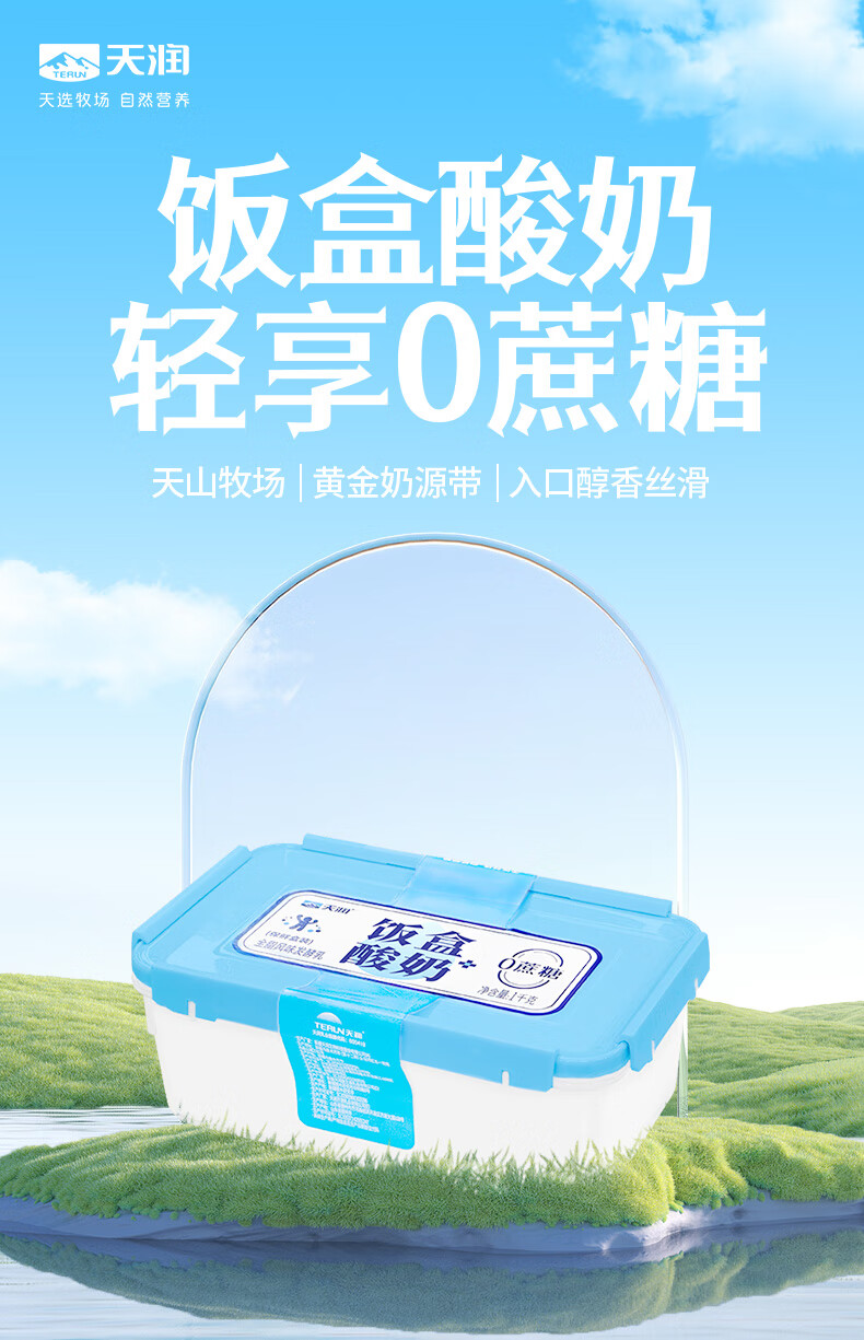 天润新疆特产润康0蔗糖低温酸奶 饭盒装原味酸牛奶 1kg*1盒
