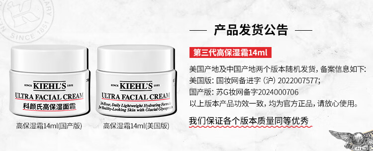 科颜氏(Kiehl's)全新第三代高保湿面霜125ml 护肤品礼盒 生日礼物