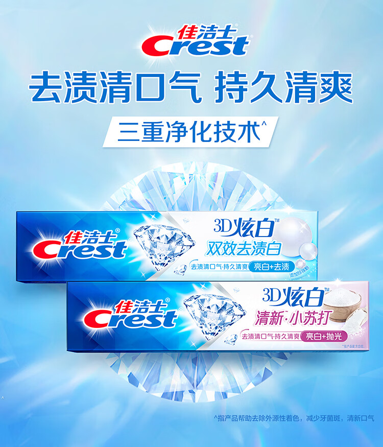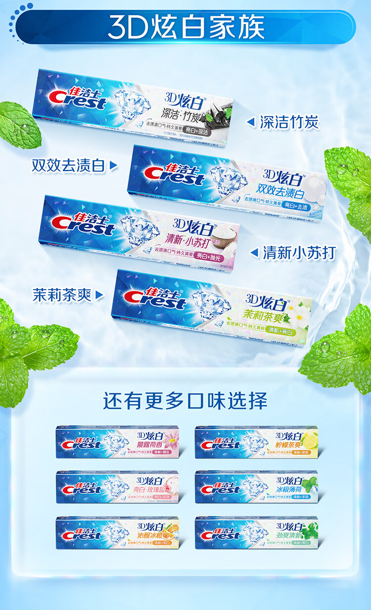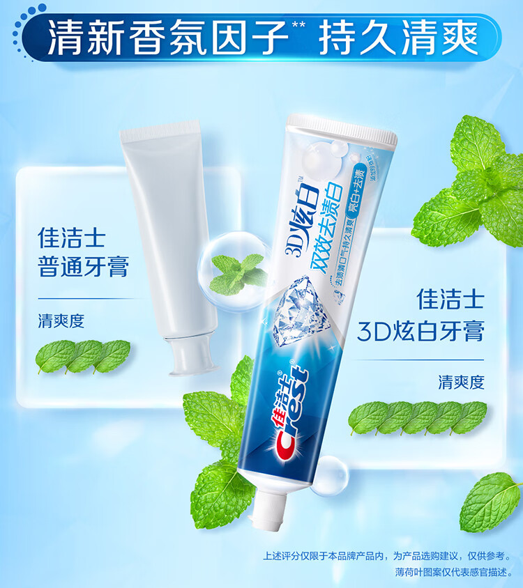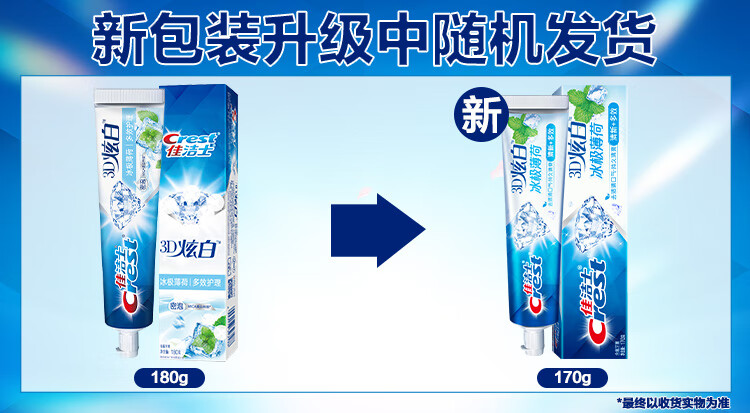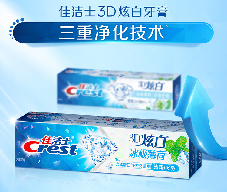 佳洁士3D炫白冰极薄荷牙膏含氟美白清新口气170g 京东自营新老包装混发