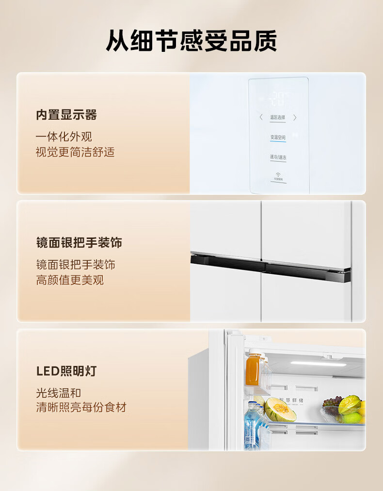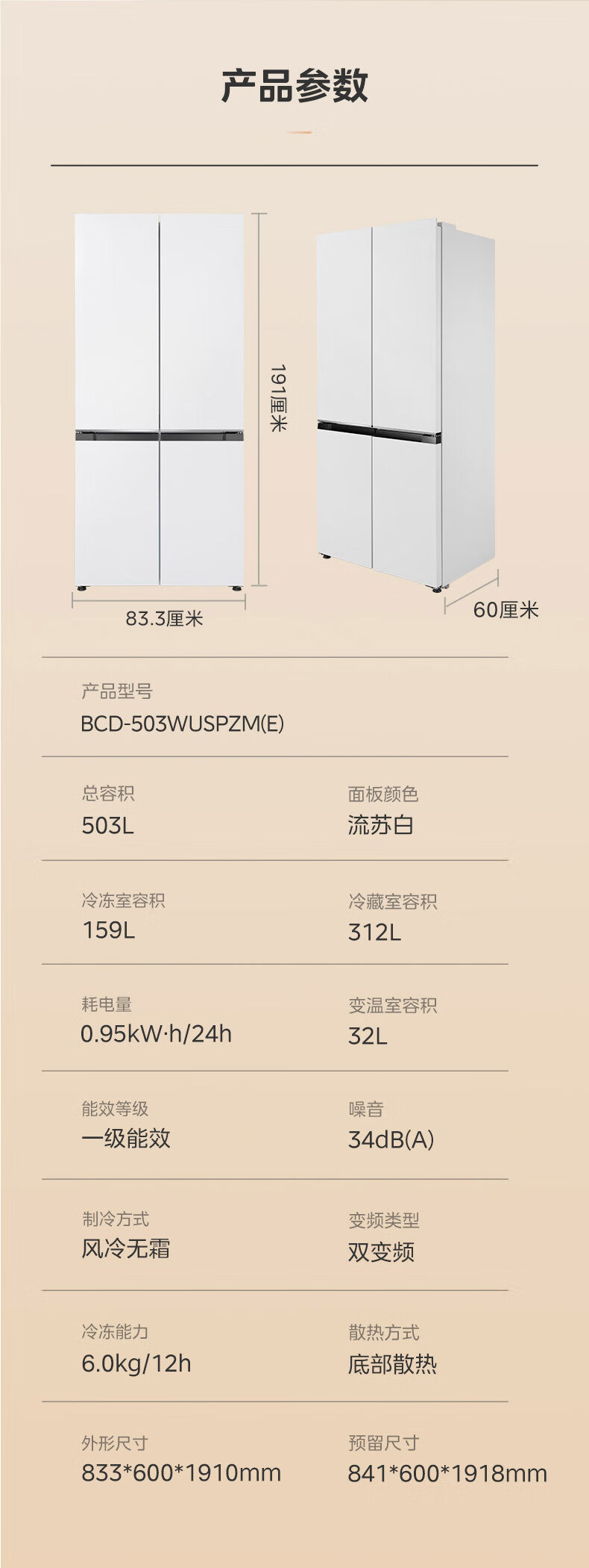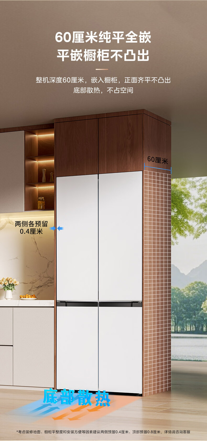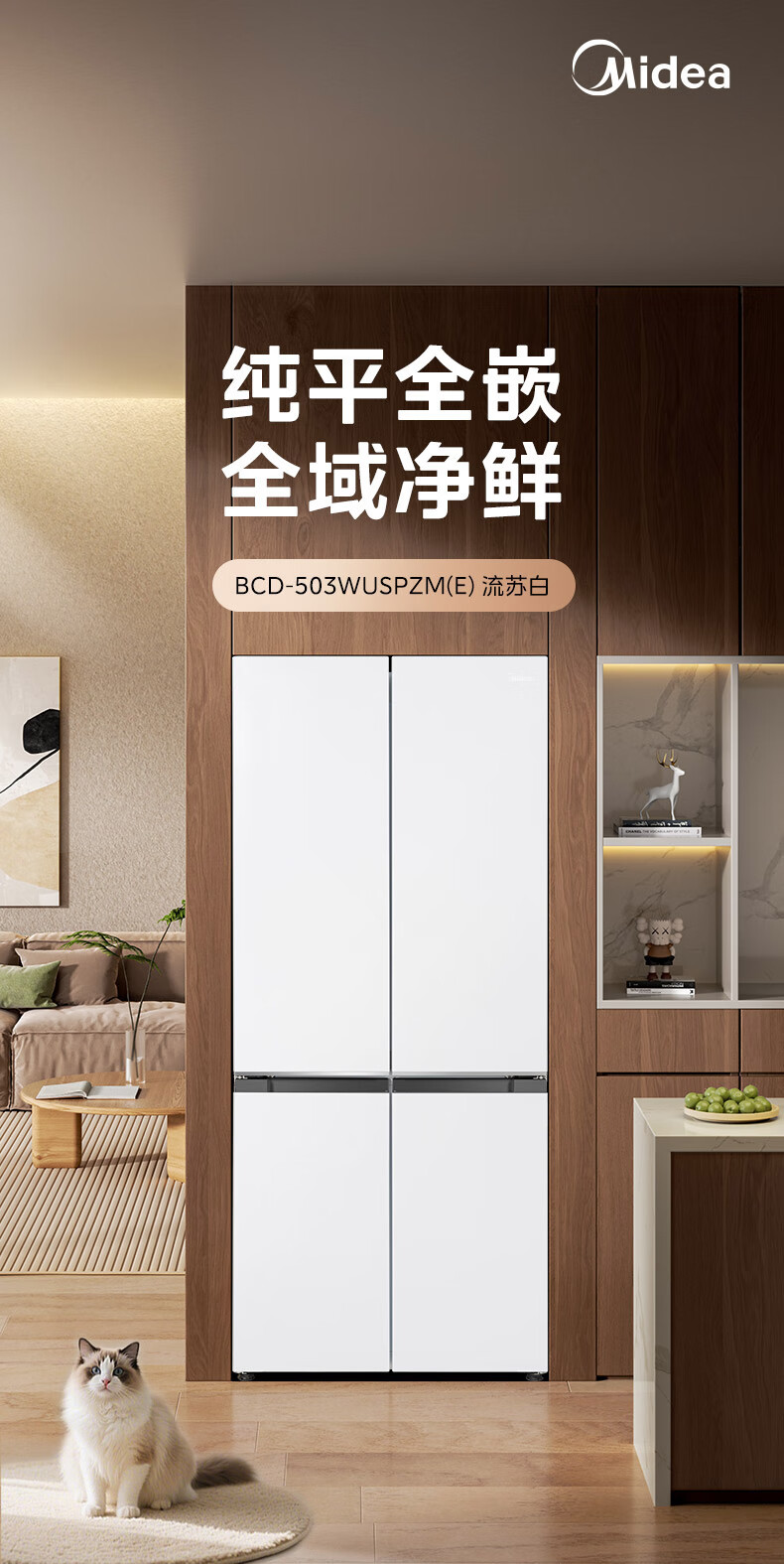 美的(Midea)503L十字门冰箱60厘米超薄零嵌入式全空间养鲜一级能效风冷无霜以旧换新BCD-503WUSPZM(E)国家补贴