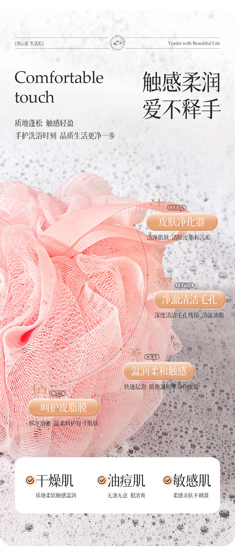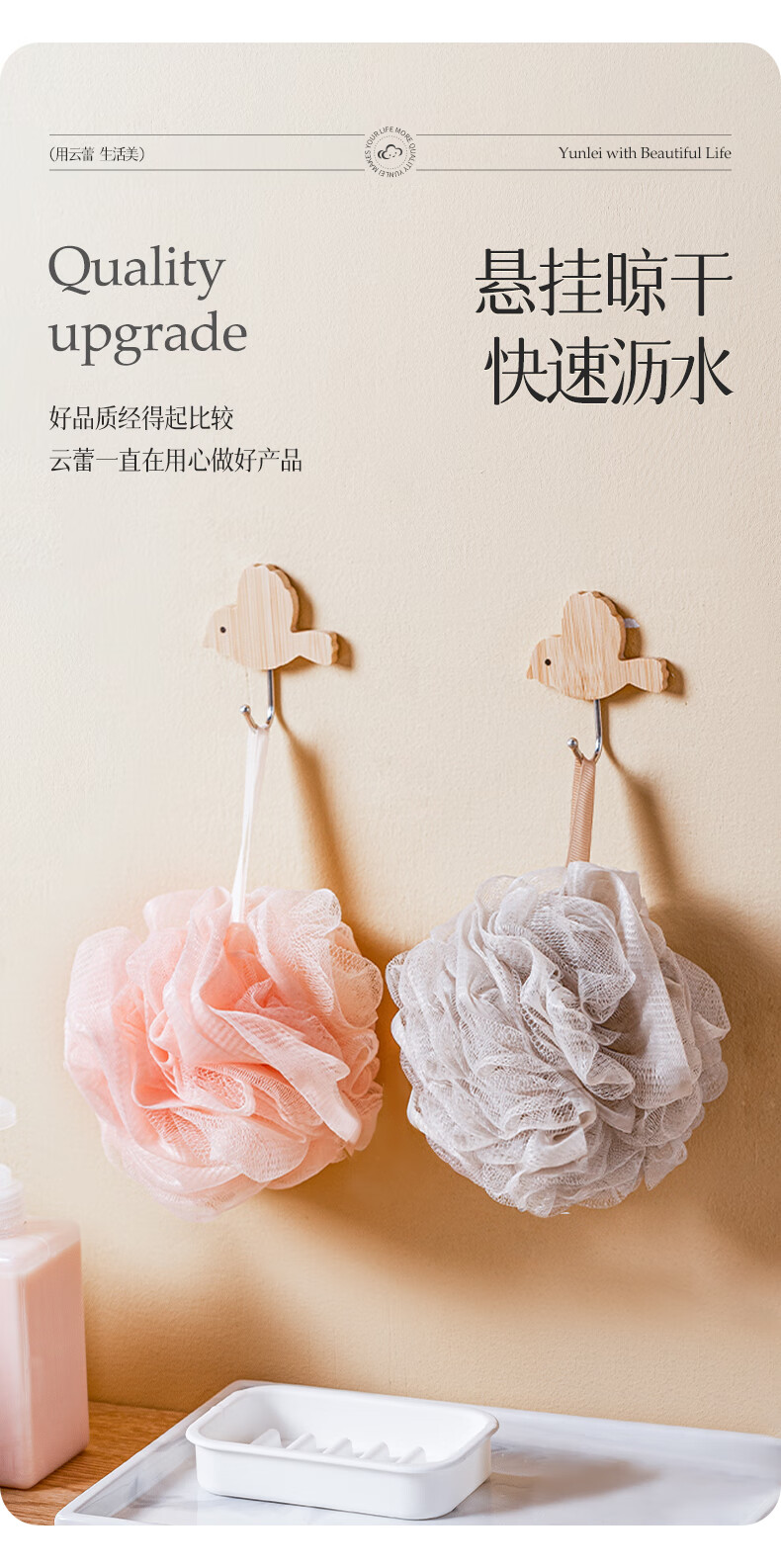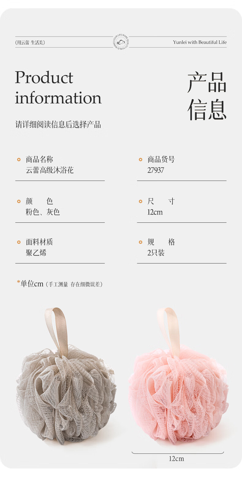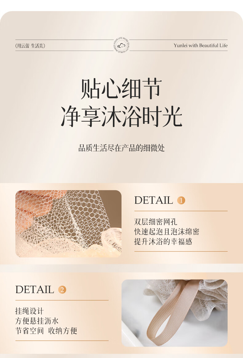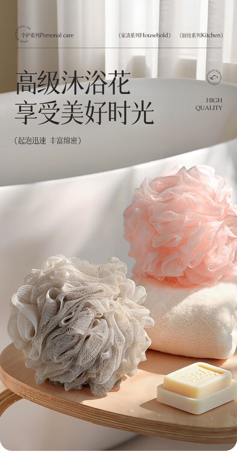 云蕾超柔沐浴球浴花2只装起泡丰富柔软不散耐用起泡神器搓澡下泥神器