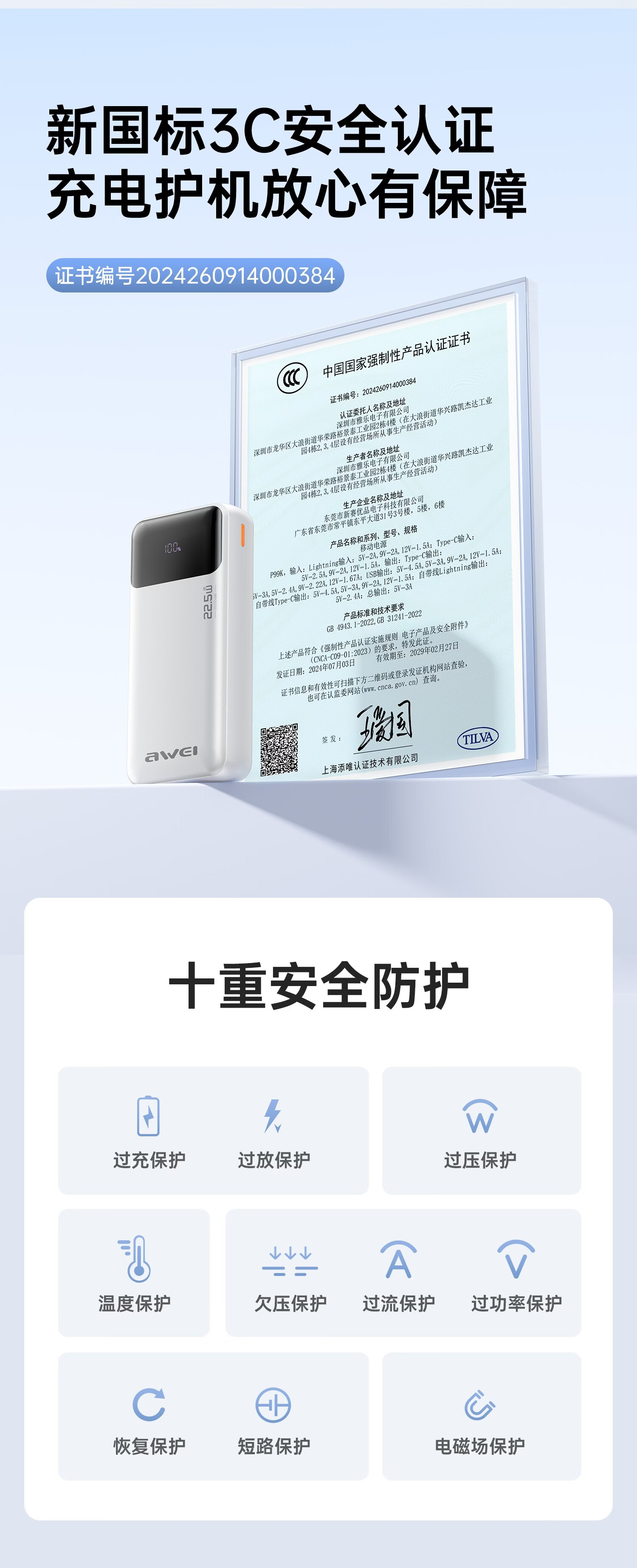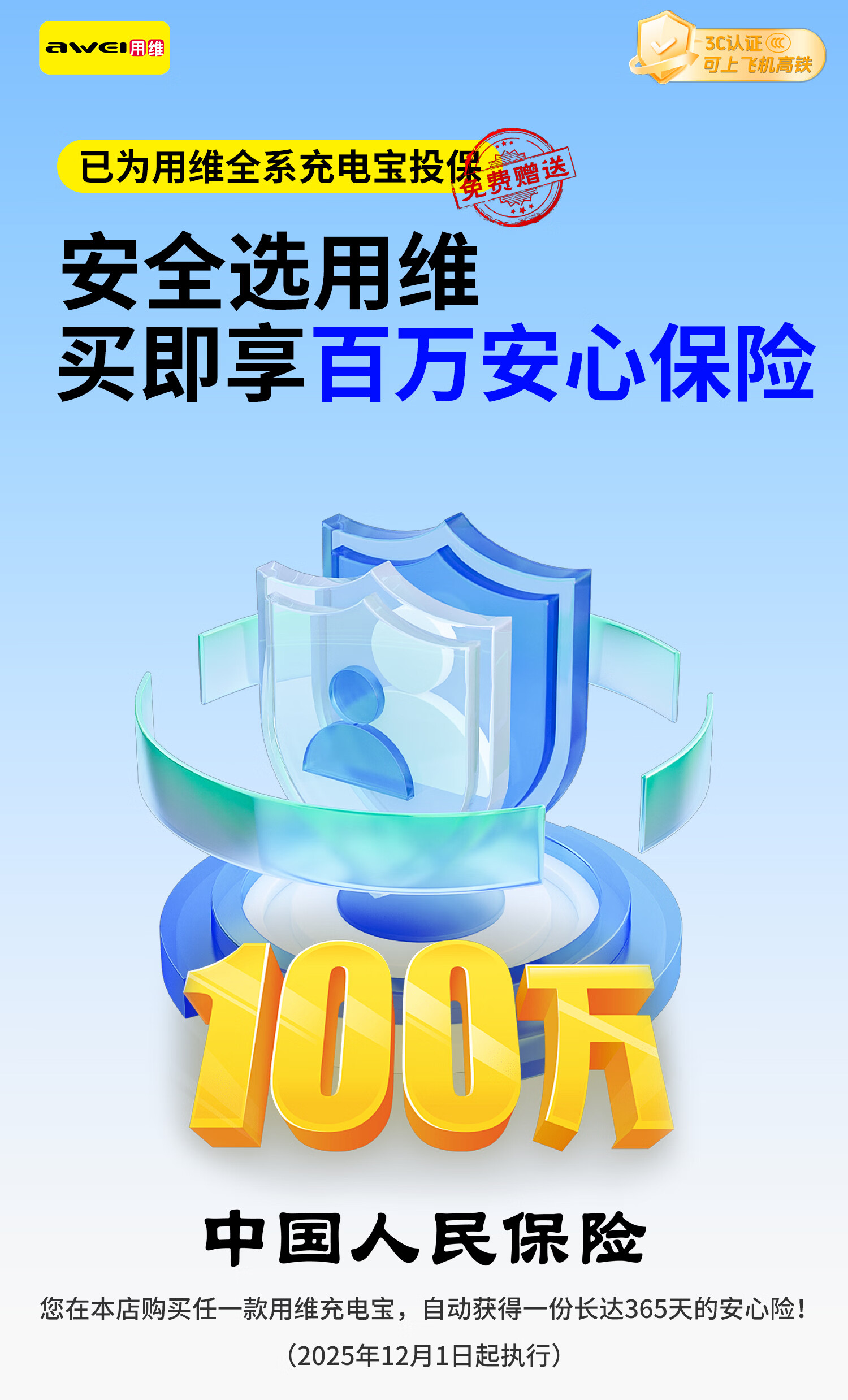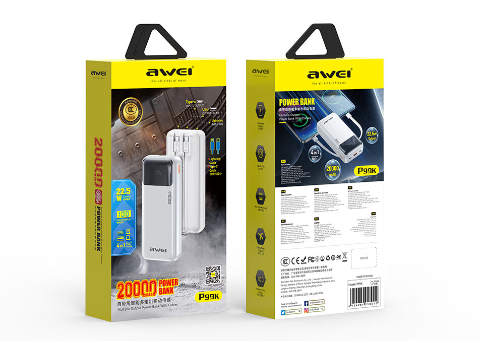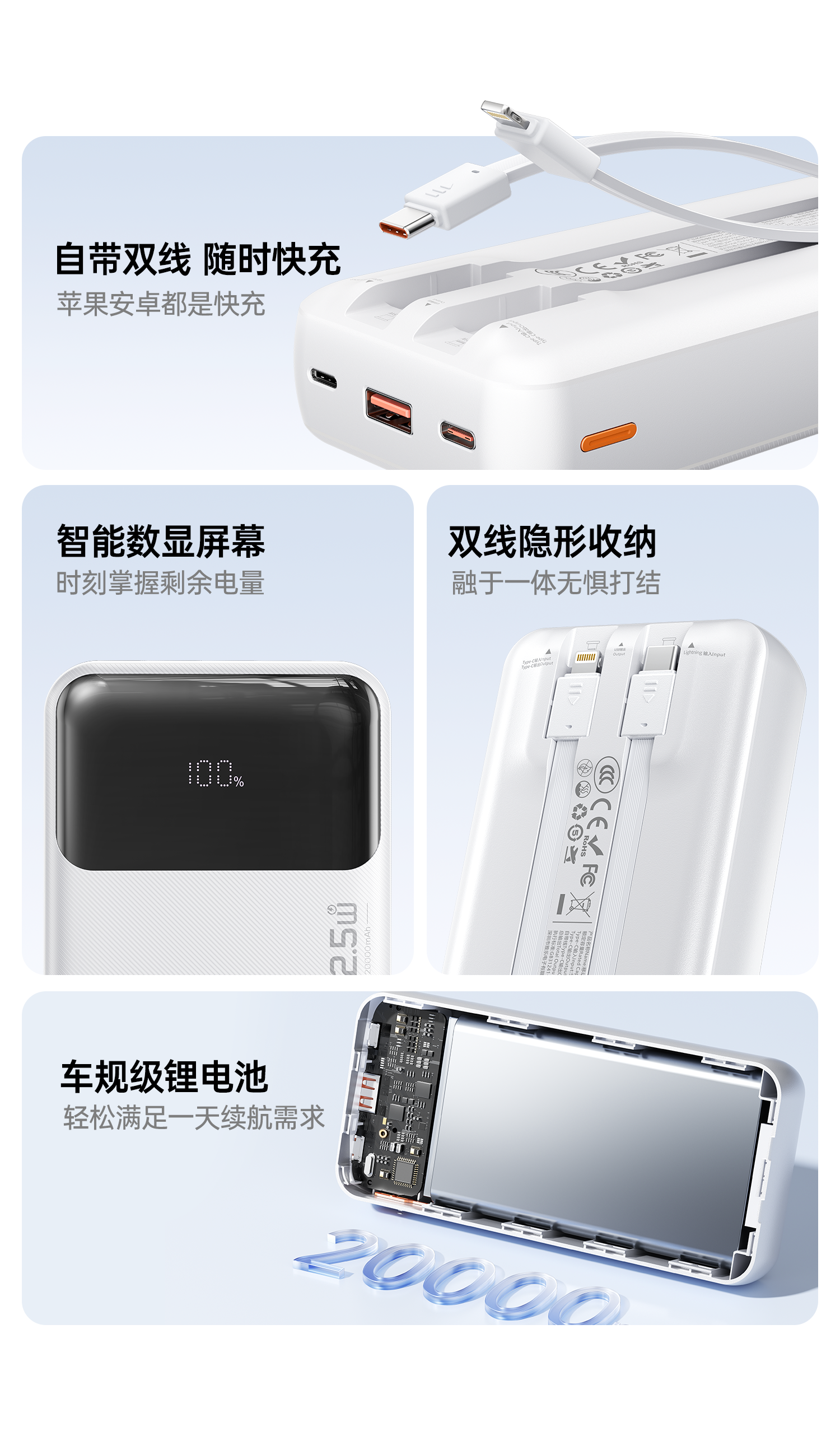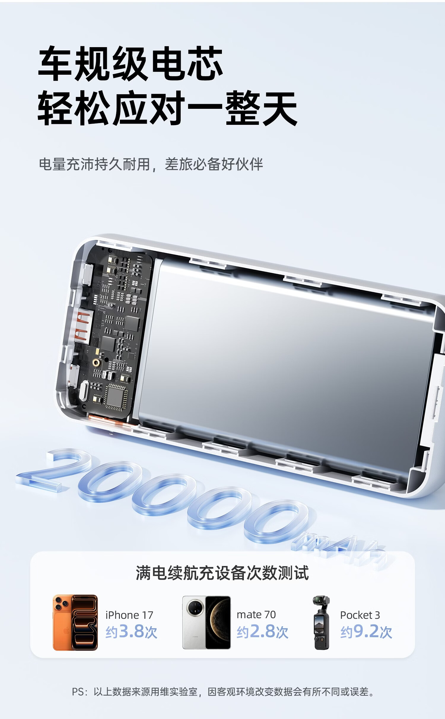 用维(AWEI)20000毫安充电宝自带双线大容量超薄小巧便携移动电源适用苹果17【国家3C认证可上飞机】 黑色 20000mAh
