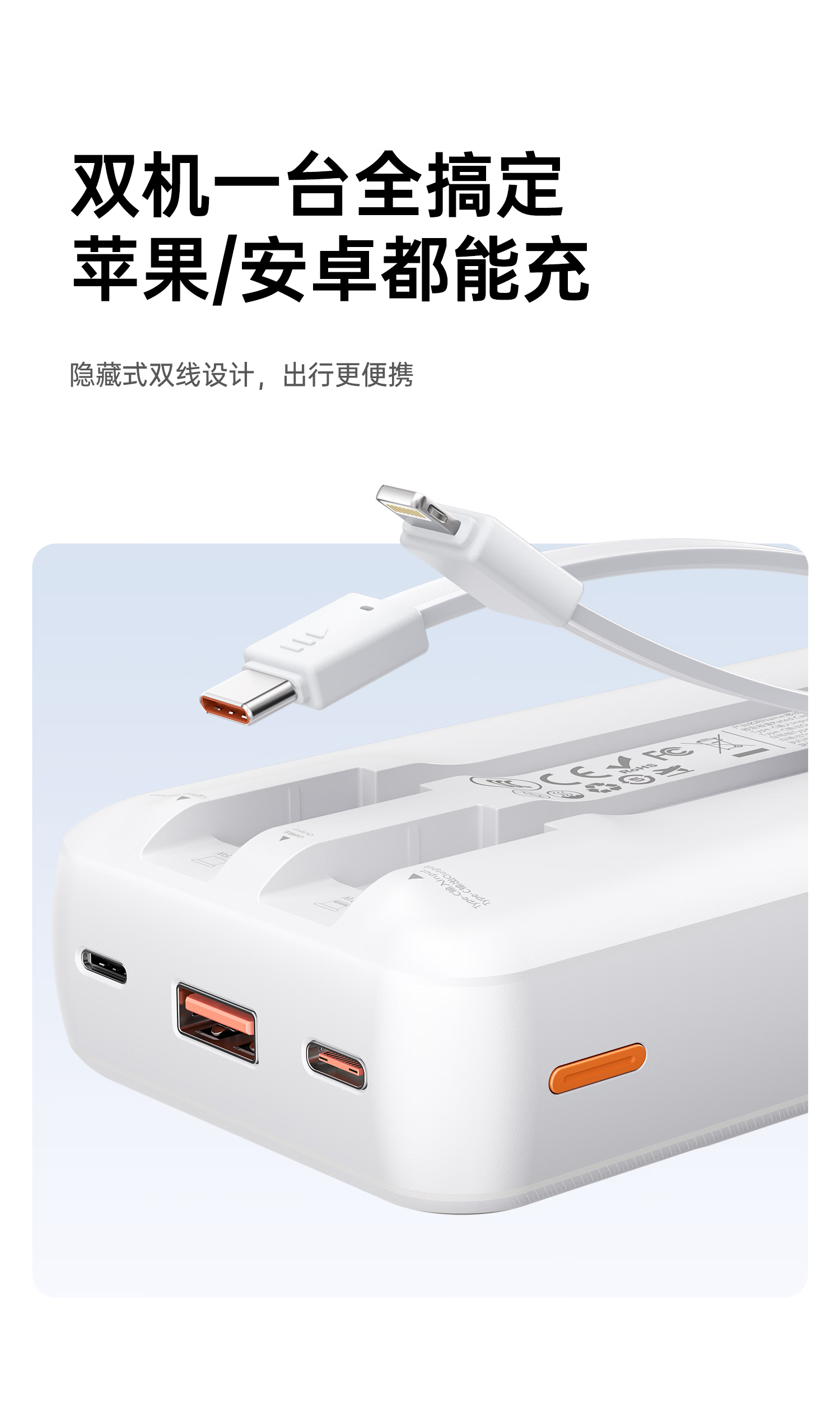 用维(AWEI)充电宝三合一10000毫安自带折叠插头充电器自带双线快充小巧移动电源适用苹果【3C认证可上飞机】 三合一【黑色-22.5W闪充】C+L双线丨折叠插头 10000mAh