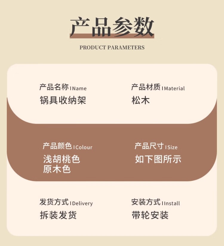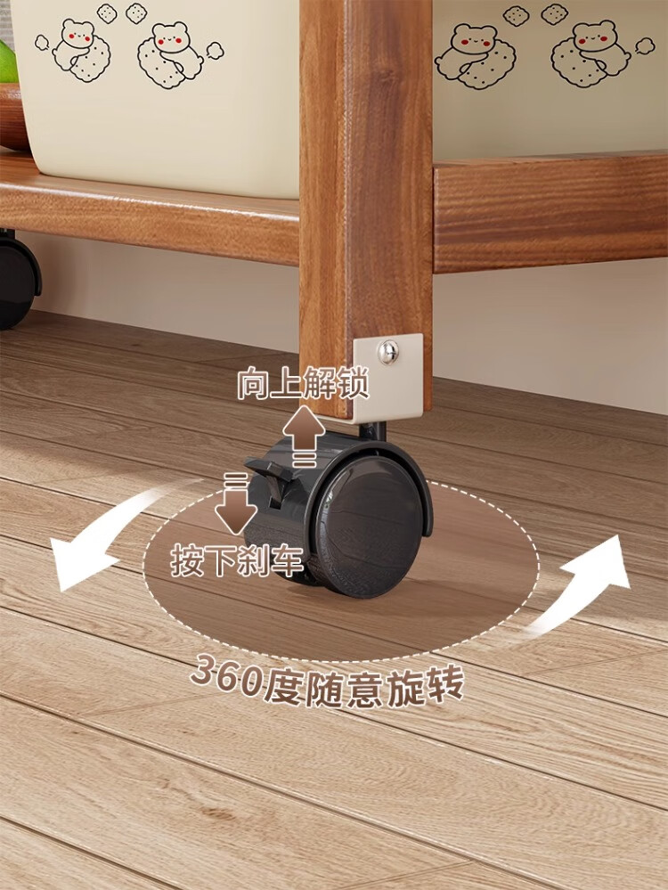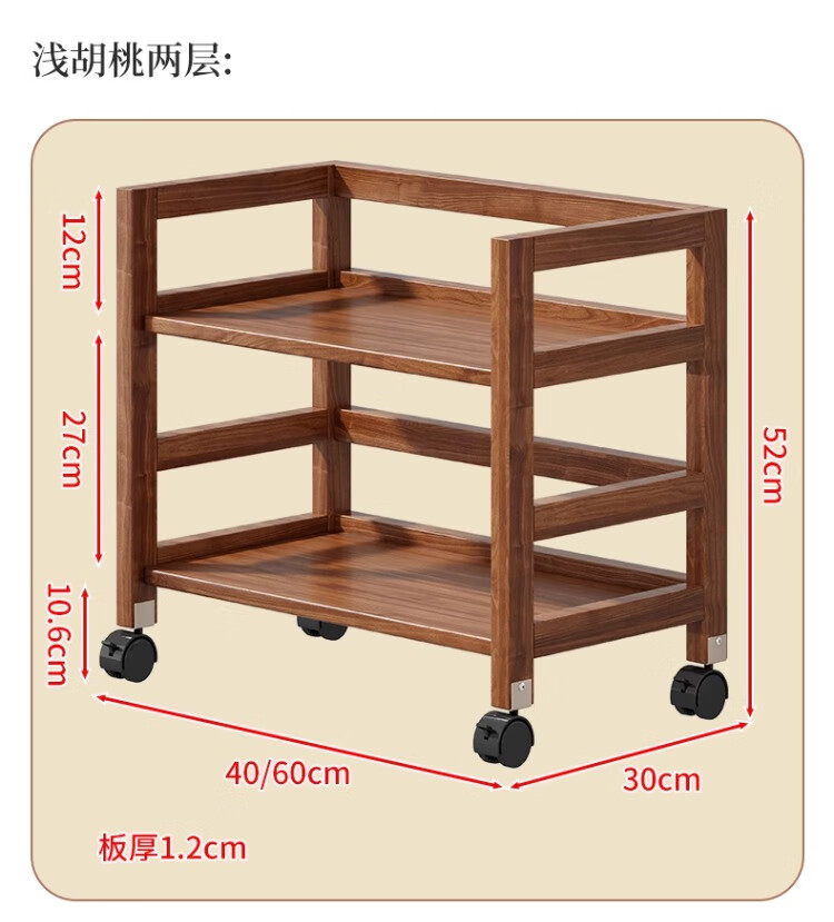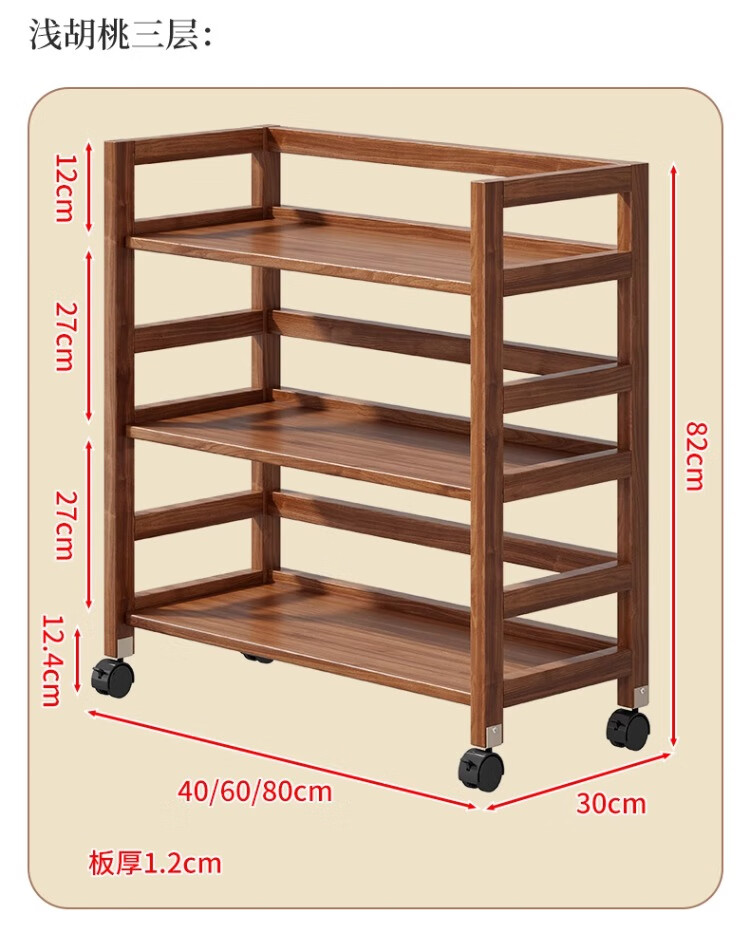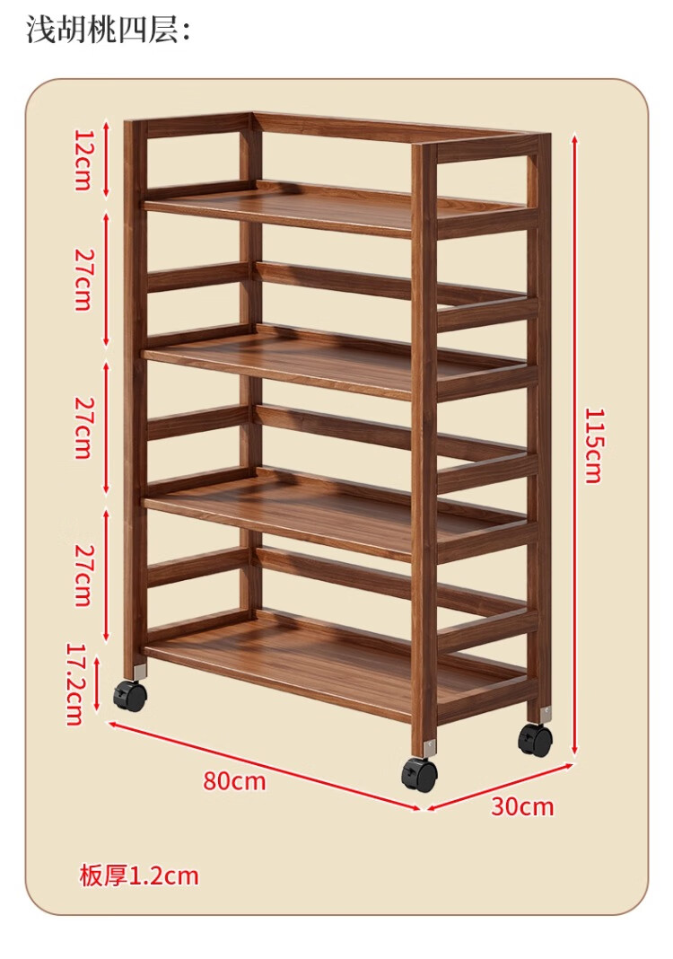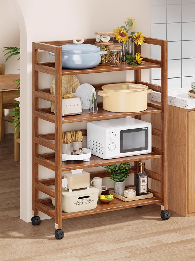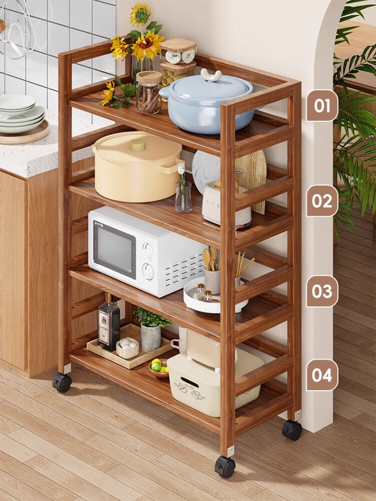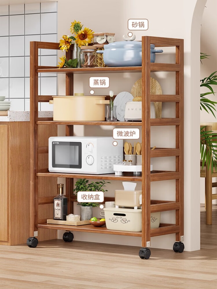 尔思家厨房置物架简约多层锅具收纳落地可移动家用靠墙杂物木质储物架子 浅胡桃四层80CM