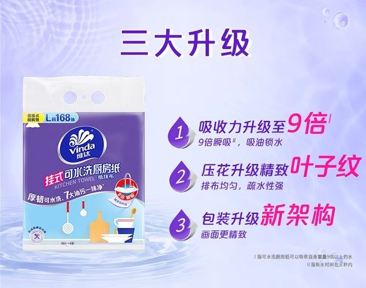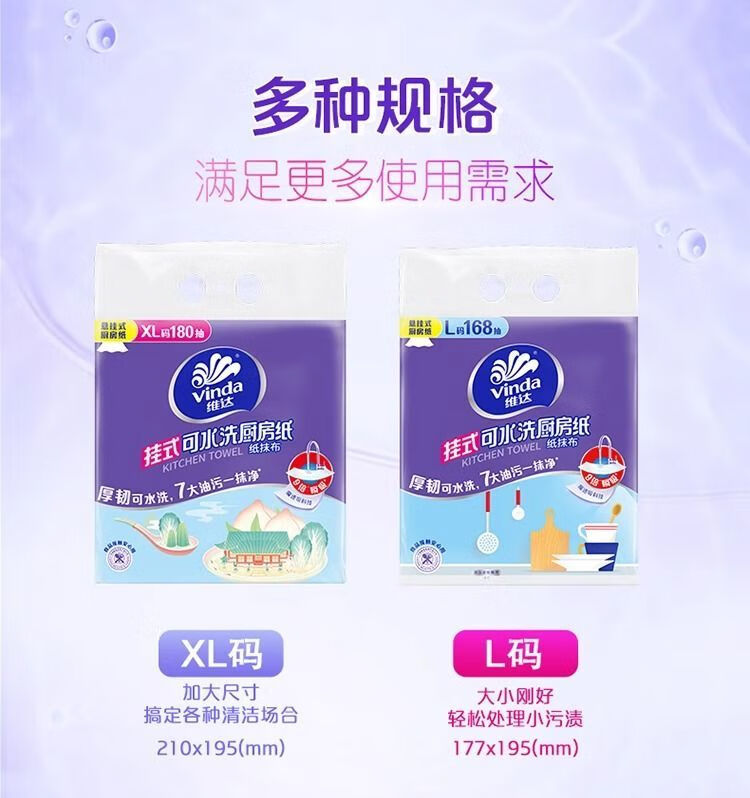 维达厨房专用抽纸大包悬挂式吸油吸水可水洗抹布可接触食品级纸巾 2层 168抽*1提