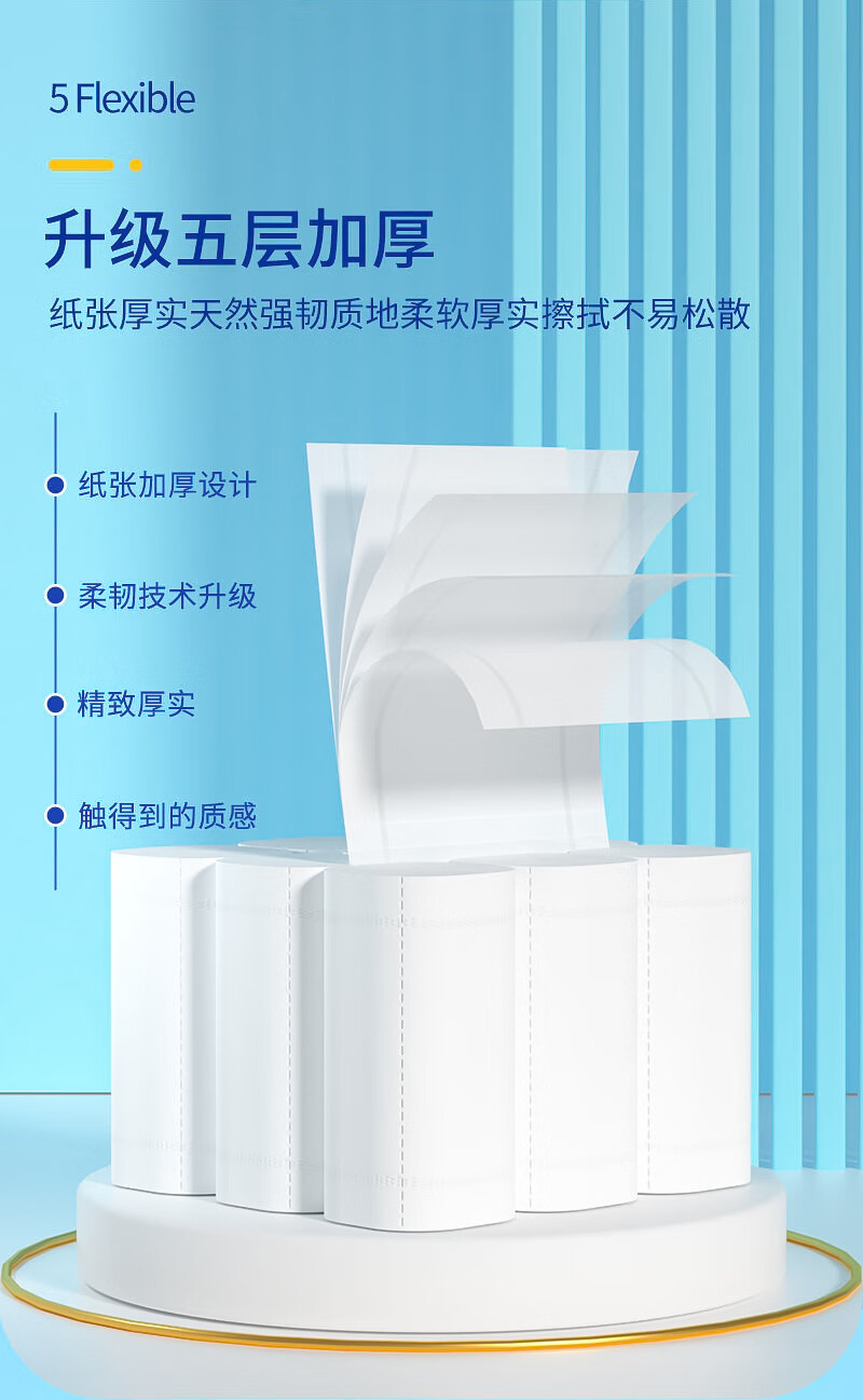 月半弯高密系列抽纸5层360张18包餐巾纸家用卫生纸加厚面巾纸可湿水纸巾