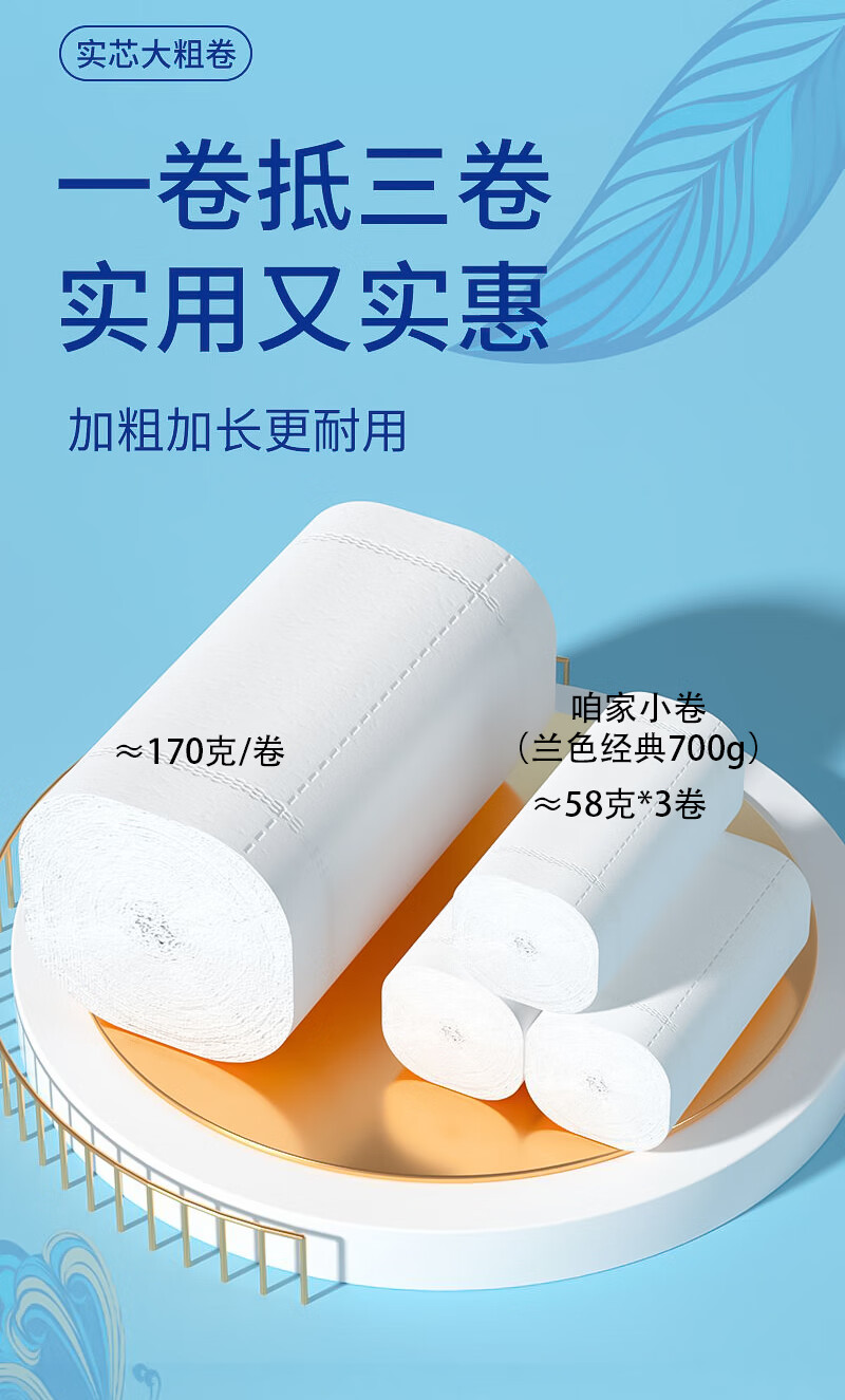 冬兰卫生纸10斤批发卷纸纸巾家庭装无芯卷筒纸实心家用卫生纸厕纸日用 5层 170g/卷*28卷 【9.6斤】批发价冲量