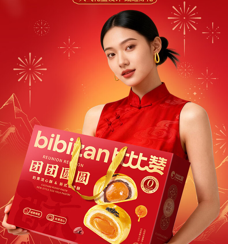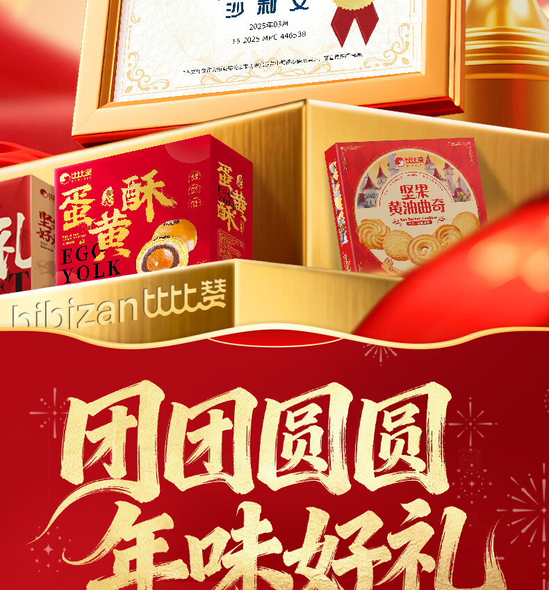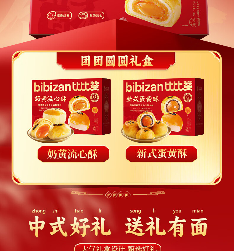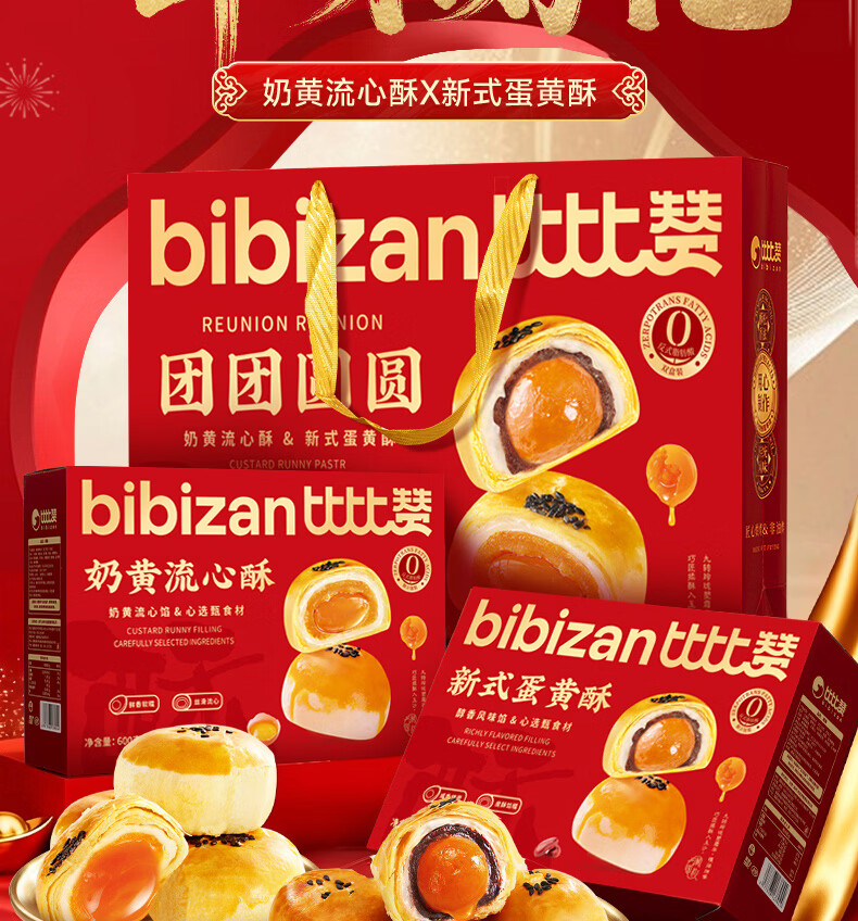 比比赞(BIBIZAN)蛋黄酥流心酥双拼年货礼盒1.2kg新春送礼饼干面包休闲零食品