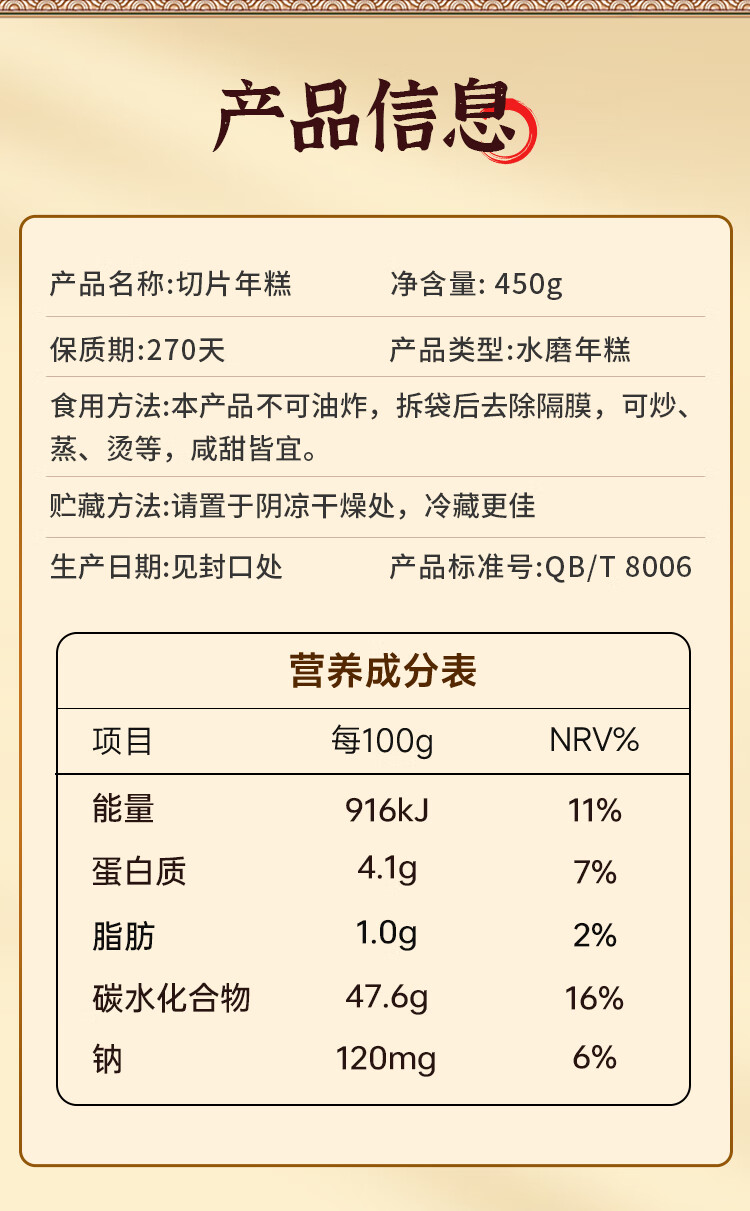 孔福面馆佳谷豆 切片年糕450g 网红脆皮水磨年糕条 宁波风味 火锅烧烤食材